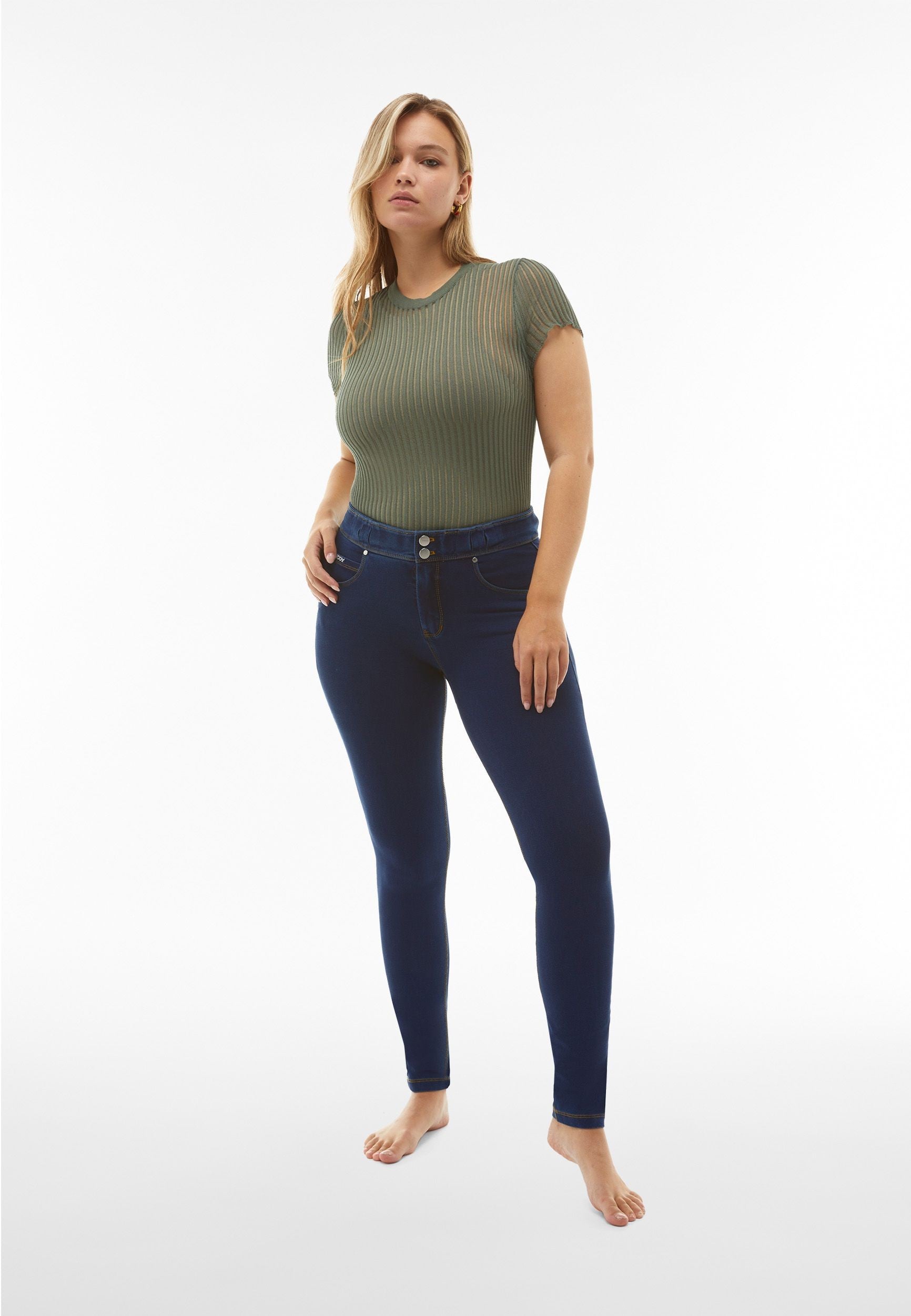 NOW® Pants in Blue: designed to flatter and move with you. This piece impresses with a timeless full length, perfect for any season. Adding to that is a comfortable mid waist for everyday ease. The look is completed by a sleek skinny fit that hugs your curves. Crafted to offer the classic look of denim with the comfort of soft, flexible fabric. Belonging to the NOW® collection, these pants prioritize ultimate comfort and freedom, moving effortlessly with you. Your go-to piece for days when you just want to feel great.