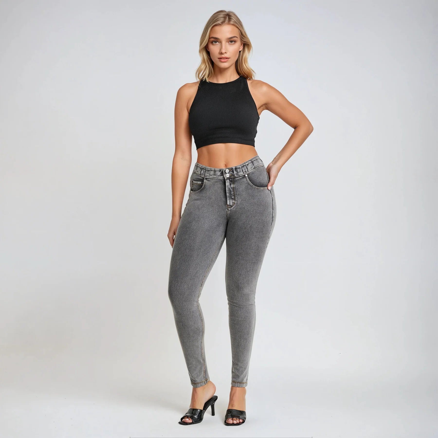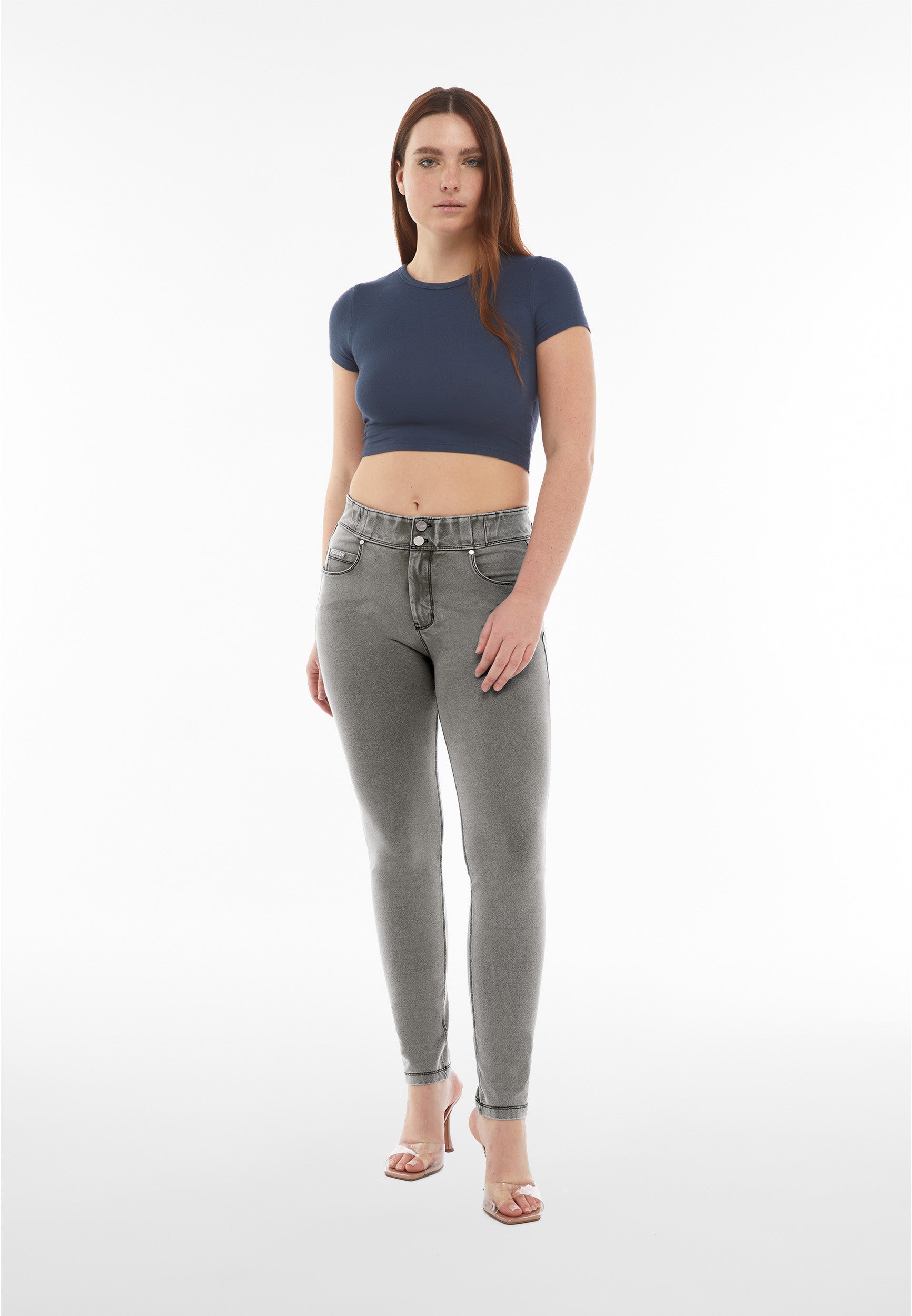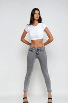 Experience the unique fit and feel of the NOW® Pants in Grey. It combines with a comfortable mid waist for everyday ease. Adding to that is a timeless full length, perfect for any season. The look is completed by a sleek skinny fit that hugs your curves. Crafted to offer the classic look of denim with the comfort of soft, flexible fabric. Belonging to the NOW® collection, these pants prioritize ultimate comfort and freedom, moving effortlessly with you. Pants that effortlessly blend comfort and fashionable looks.