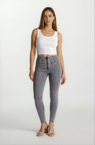 Experience the unique fit and feel of the WR.UP® Pants in Grey. It combines with a sleek skinny fit that hugs your curves. Adding to that is a flattering high waist that offers gentle support. The look is completed by a timeless full length, perfect for any season. Crafted designed with a stretch denim-effect material for authentic style and easy movement. As part of the WR.UP® line, they feature patented technology designed to naturally enhance and sculpt your silhouette. Perfect for countless occasions, from casual to chic.