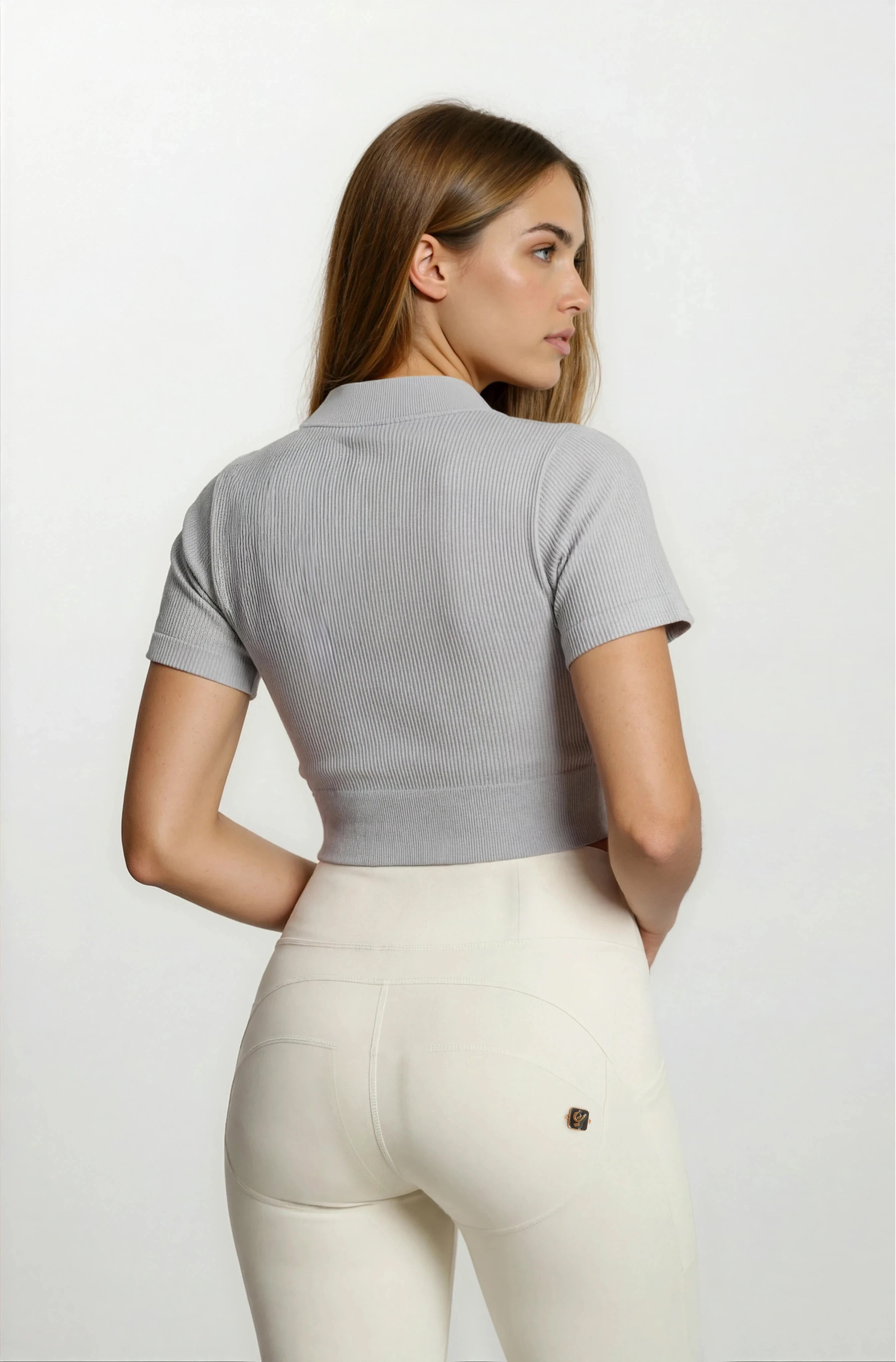 WR.UP® Pants in White: designed to flatter and move with you. They feature a flattering high waist that offers gentle support. Adding to that is a sleek skinny fit that hugs your curves. The look is completed by a modern 7/8 length that subtly highlights your ankles. Crafted from a soft jersey knit with added stretch for flexibility. As part of the WR.UP® line, they feature patented technology designed to naturally enhance and sculpt your silhouette. Italian design that radiates confidence and style.