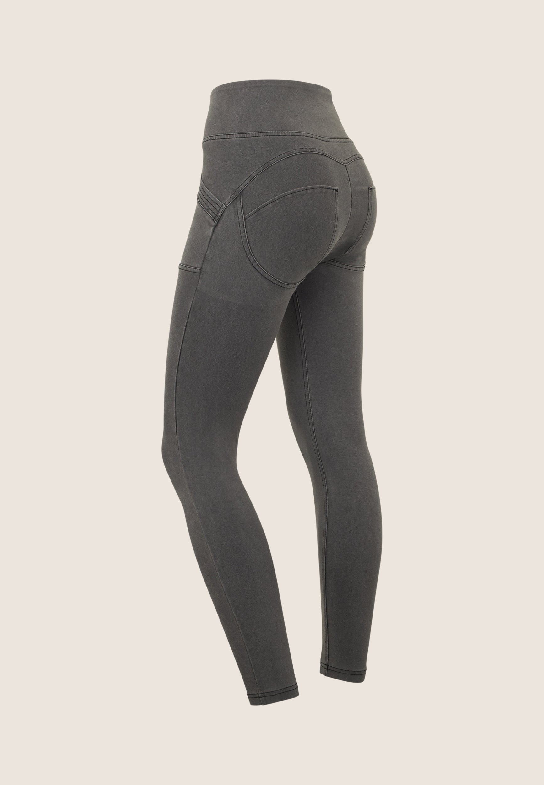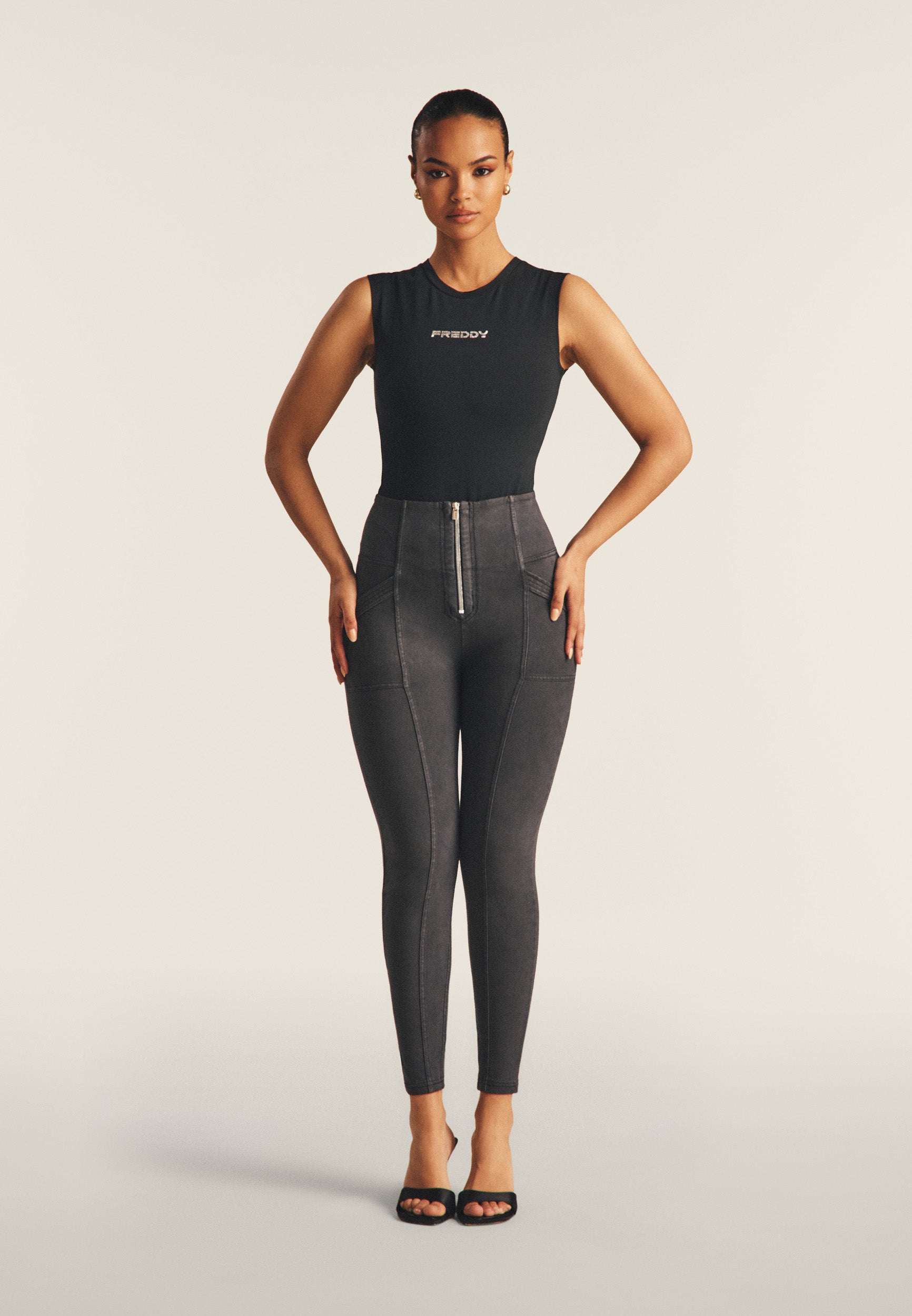 Organic cotton WR.UP® trousers with pigment dyed treatment for a unique, worn-in effect. The zipped high waist and super-skinny 7/8 fit to the ankle ensure a sophisticated and original look. The decorative stitching in the centre of the legs slims the figure, while the patented WR.UP technology naturally emphasises your shape. Decorative enamel tab detail on the left back pocket.