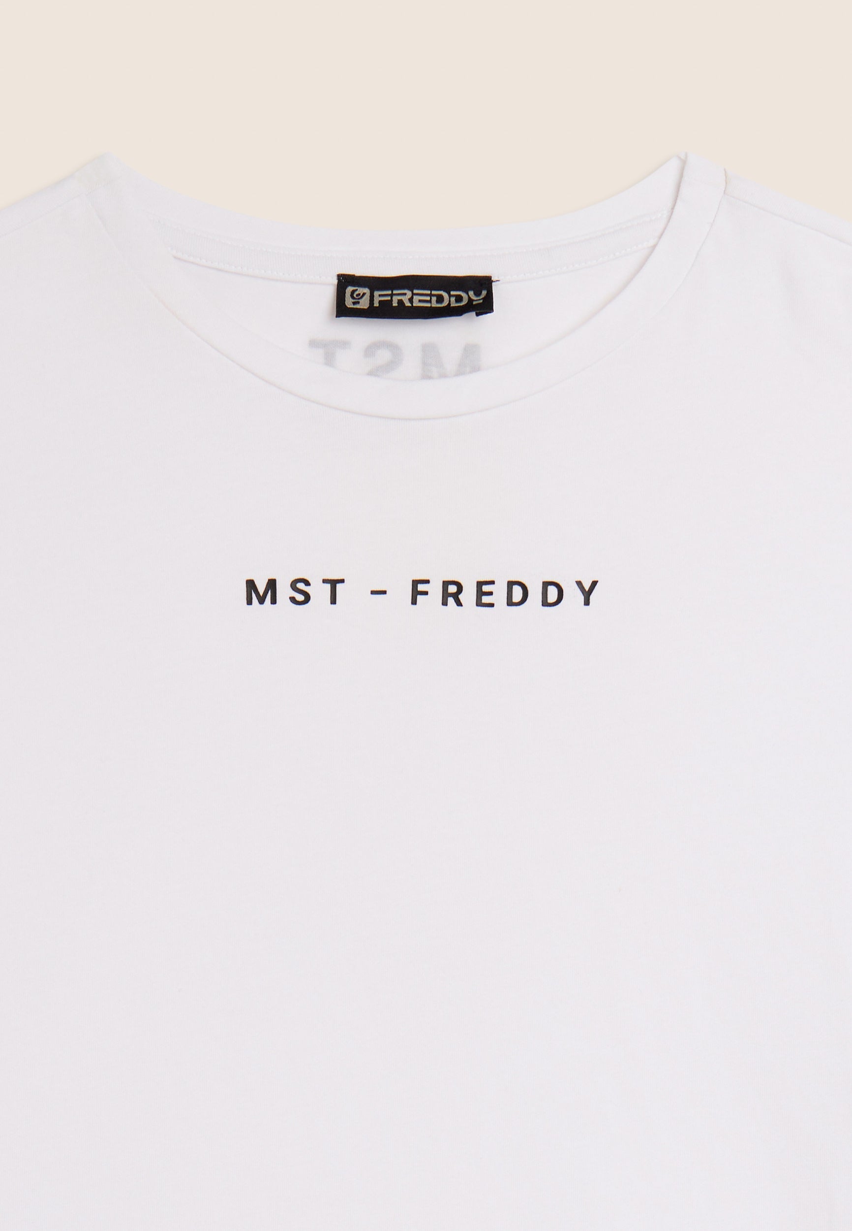 Short-sleeved t-shirt, cropped, with MST FREDDY prints - Optical White