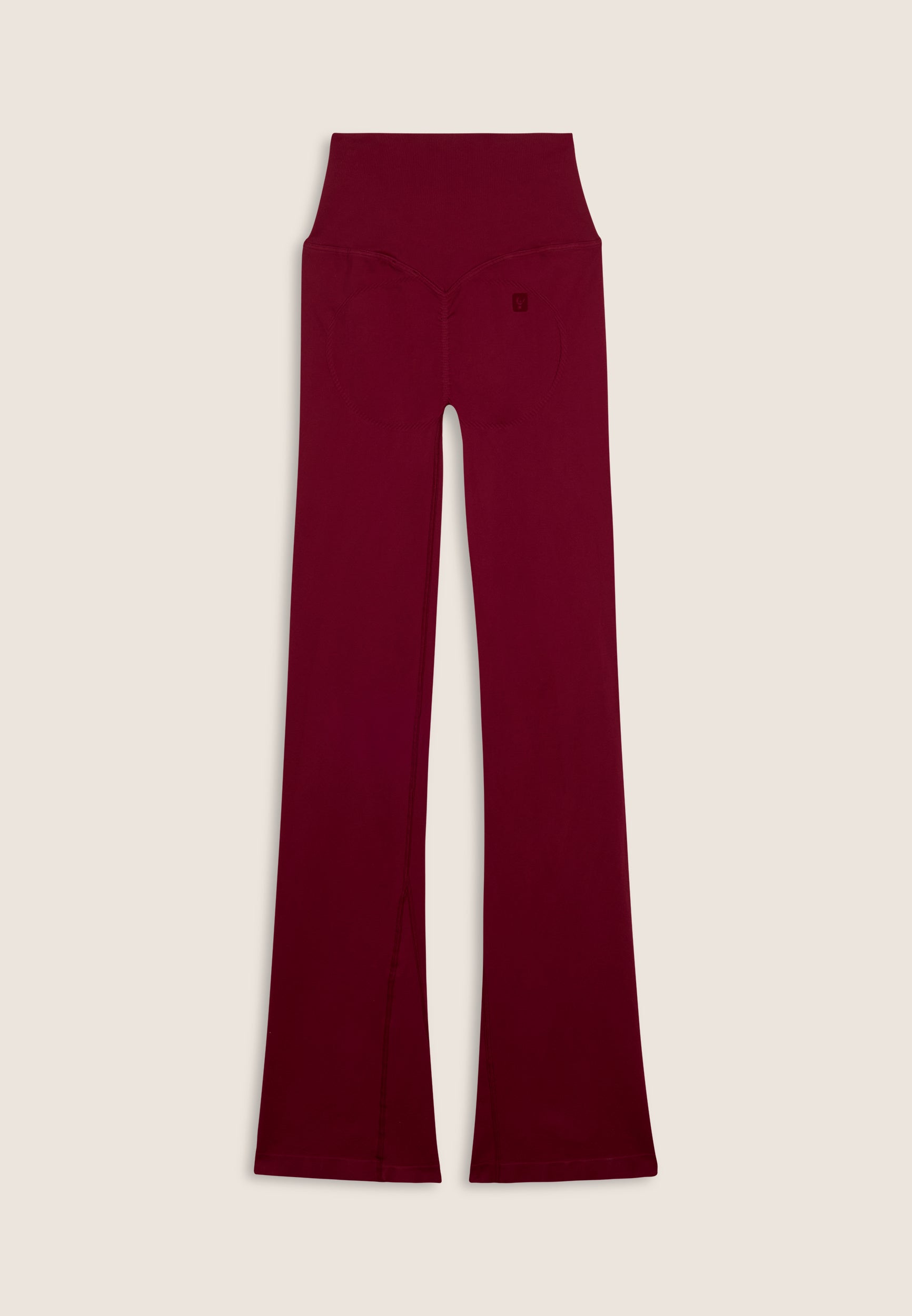 Feminine and modern in style, these regular leggings with flared bottoms are made from breathable jersey fabric for comfort and performance. The very high waist in seamless ribbed fabric gives support, while the heart-shaped seams at the back provide a shaping fit.