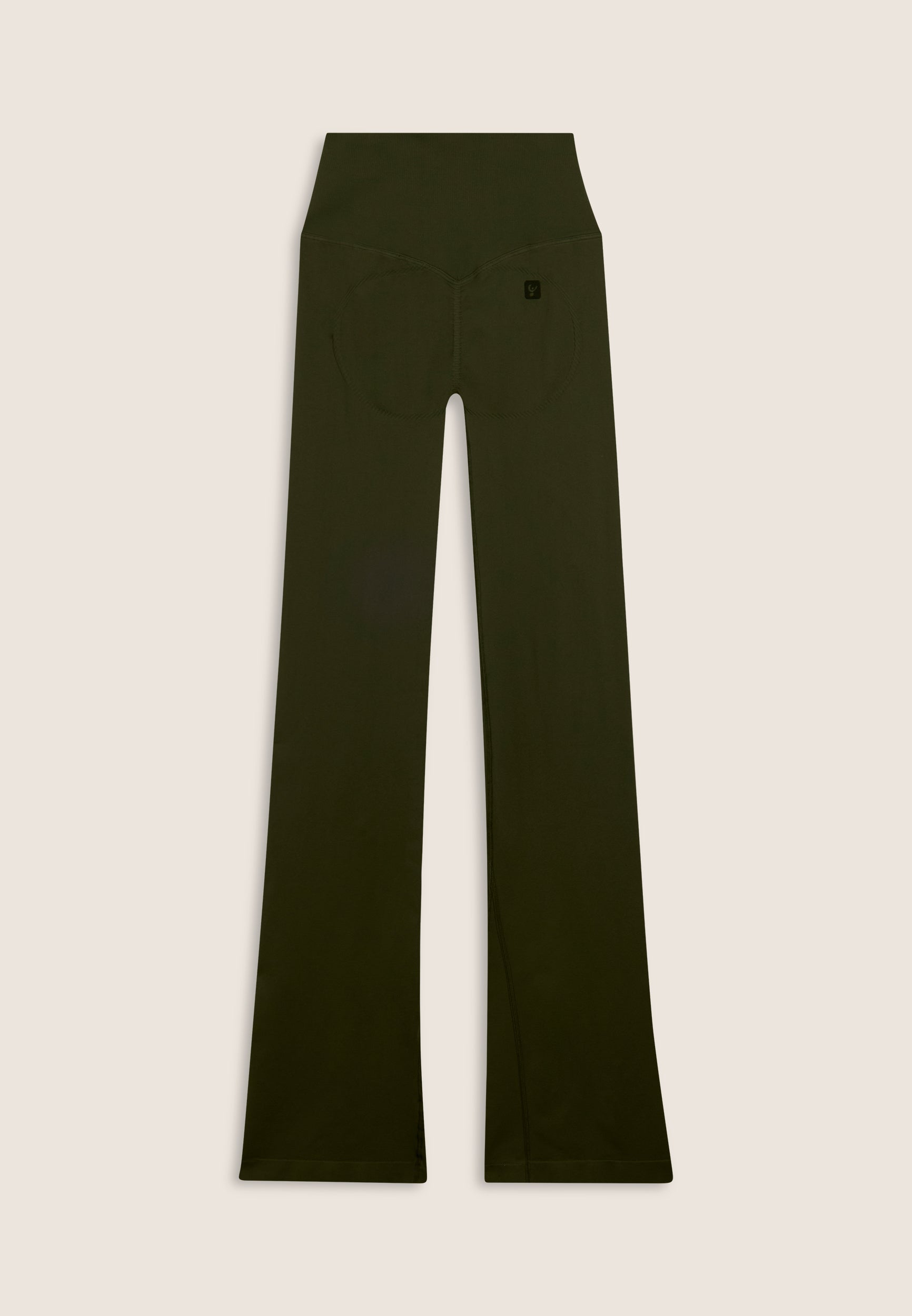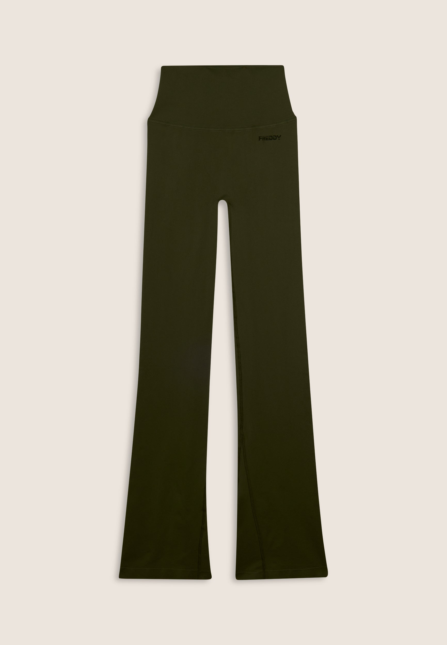 Feminine and modern in style, these regular leggings with flared bottoms are made from breathable jersey fabric for comfort and performance. The very high waist in seamless ribbed fabric gives support, while the heart-shaped seams at the back provide a shaping fit.