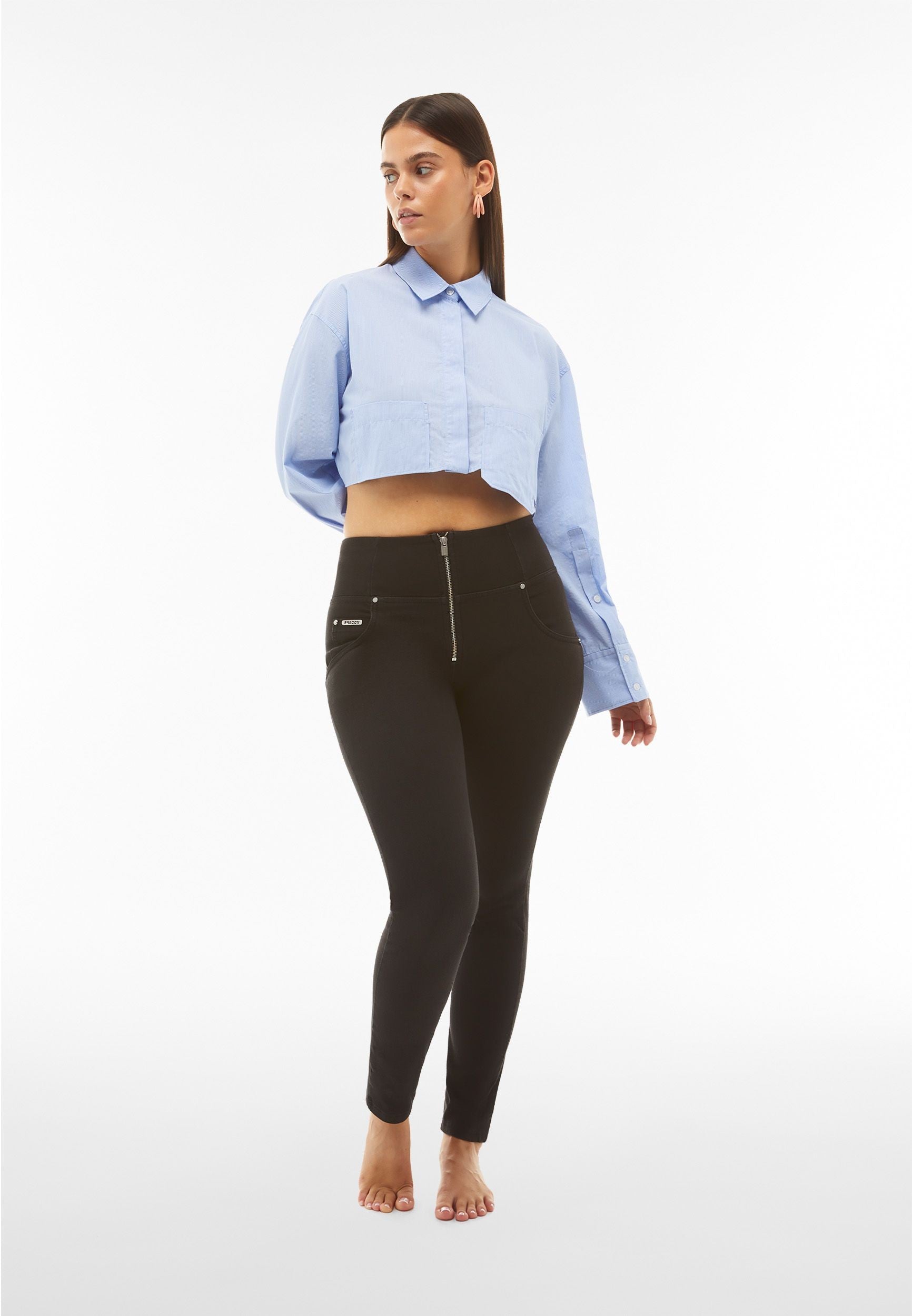 WR.UP® Organic Pants in Black: designed to flatter and move with you. This piece impresses with a flattering high waist that offers gentle support. Crafted from breathable organic cotton blended with stretch for comfort and shape, designed with a stretch denim-effect material for authentic style and easy movement, as well as crafted from sustainable Tencel™ Lyocell that drapes beautifully and feels amazing. As part of the WR.UP® line, they feature patented technology designed to naturally enhance and sculpt your silhouette. Pants that effortlessly blend comfort and fashionable looks.