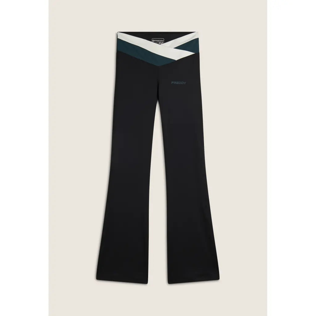 Two-tone criss-cross high waist flared leggings