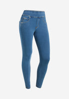 The N.O.W.® line of trousers supports your every movement without constraints thanks to the special four-way stretch, durable, denim-effect jersey fabric that facilitates movement. At the same time, it perfectly echoes the lines of the body, defining without constricting the silhouette.