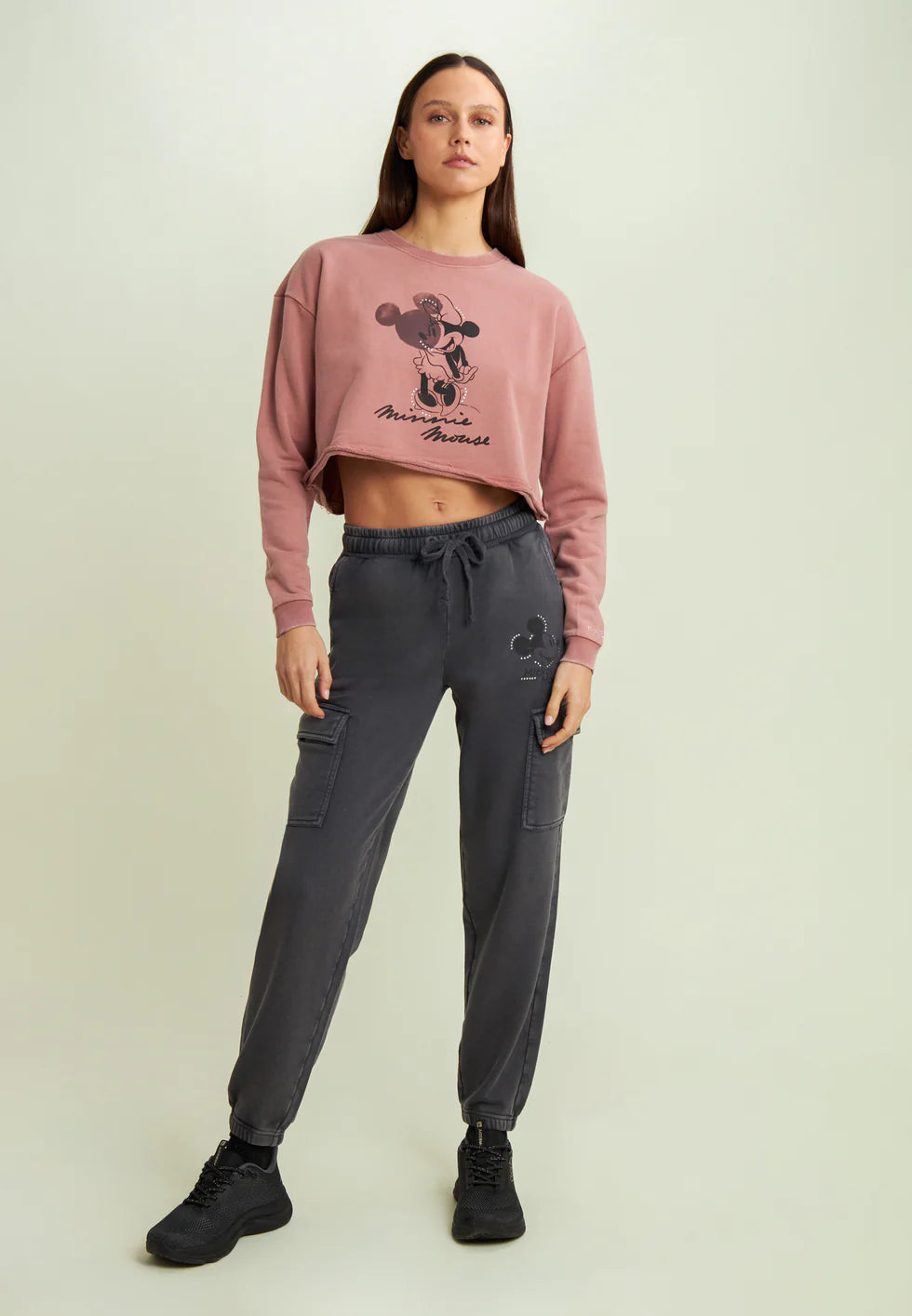 Women's cropped sweatshirt with Disney graphics and edge-to-edge seam