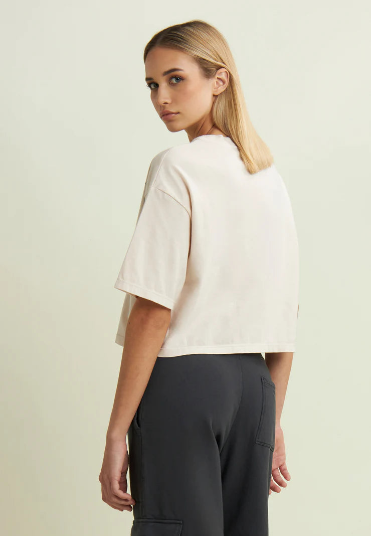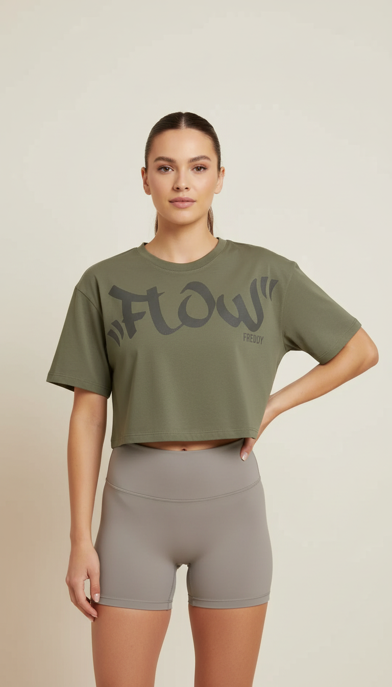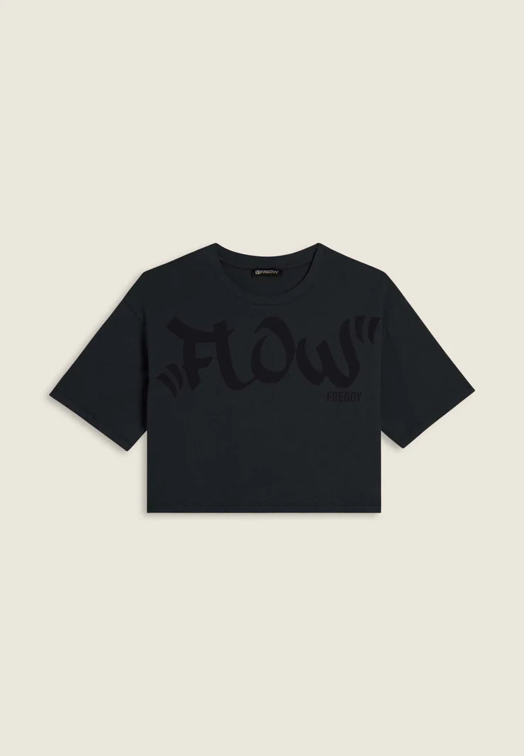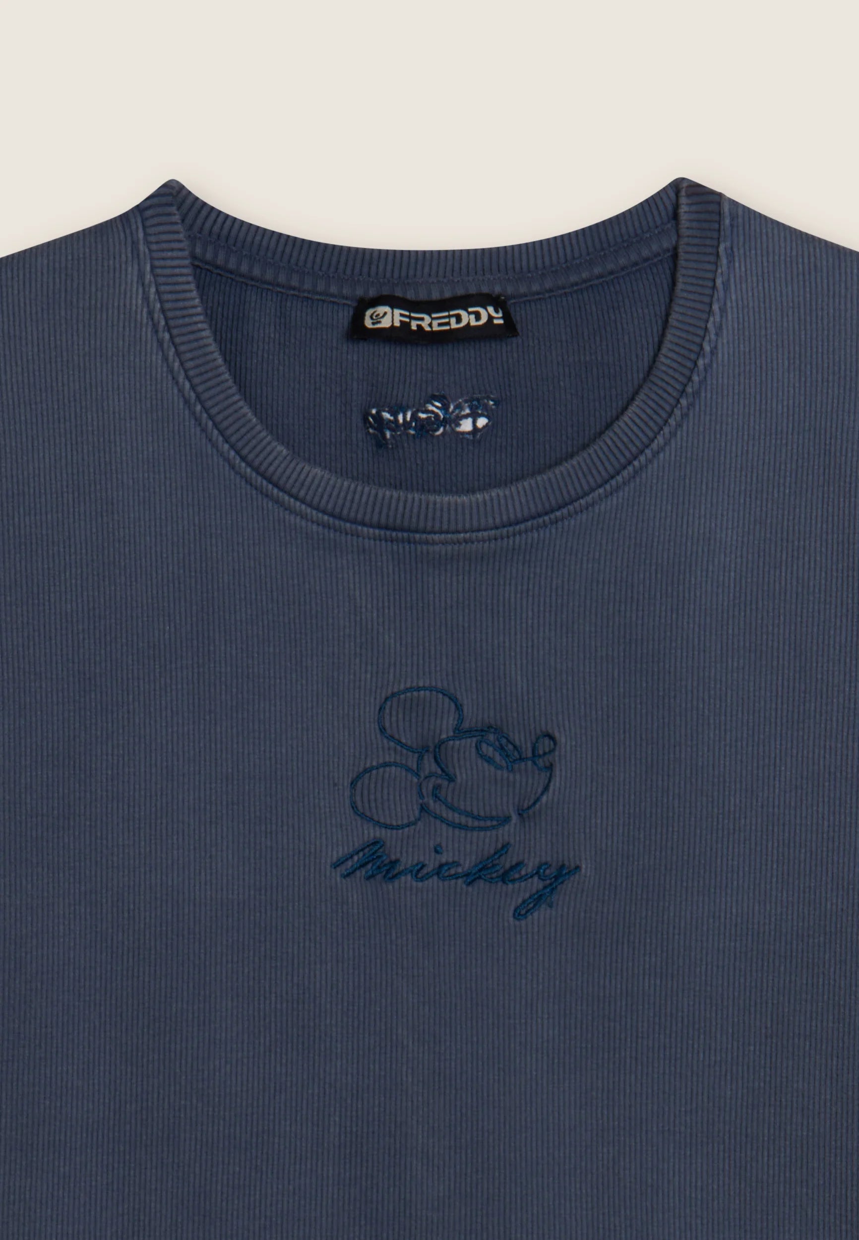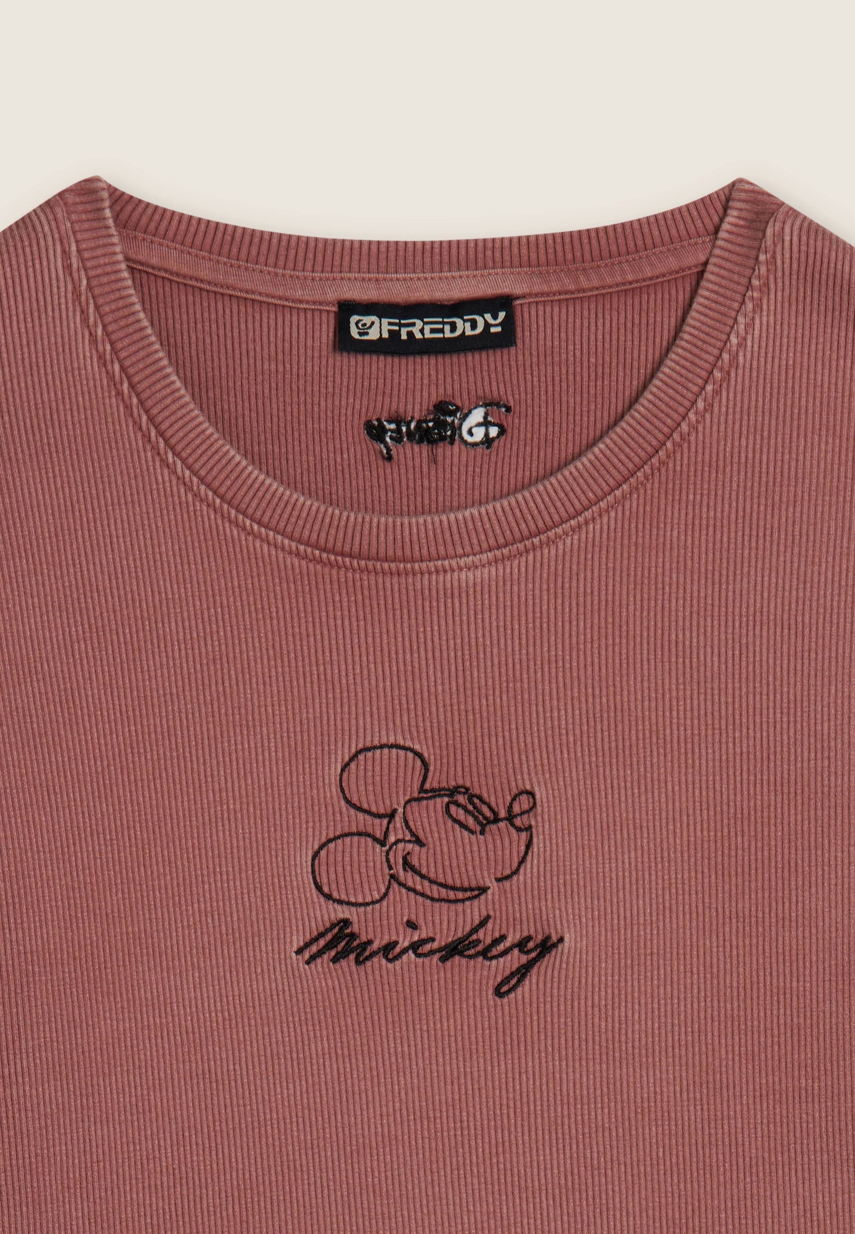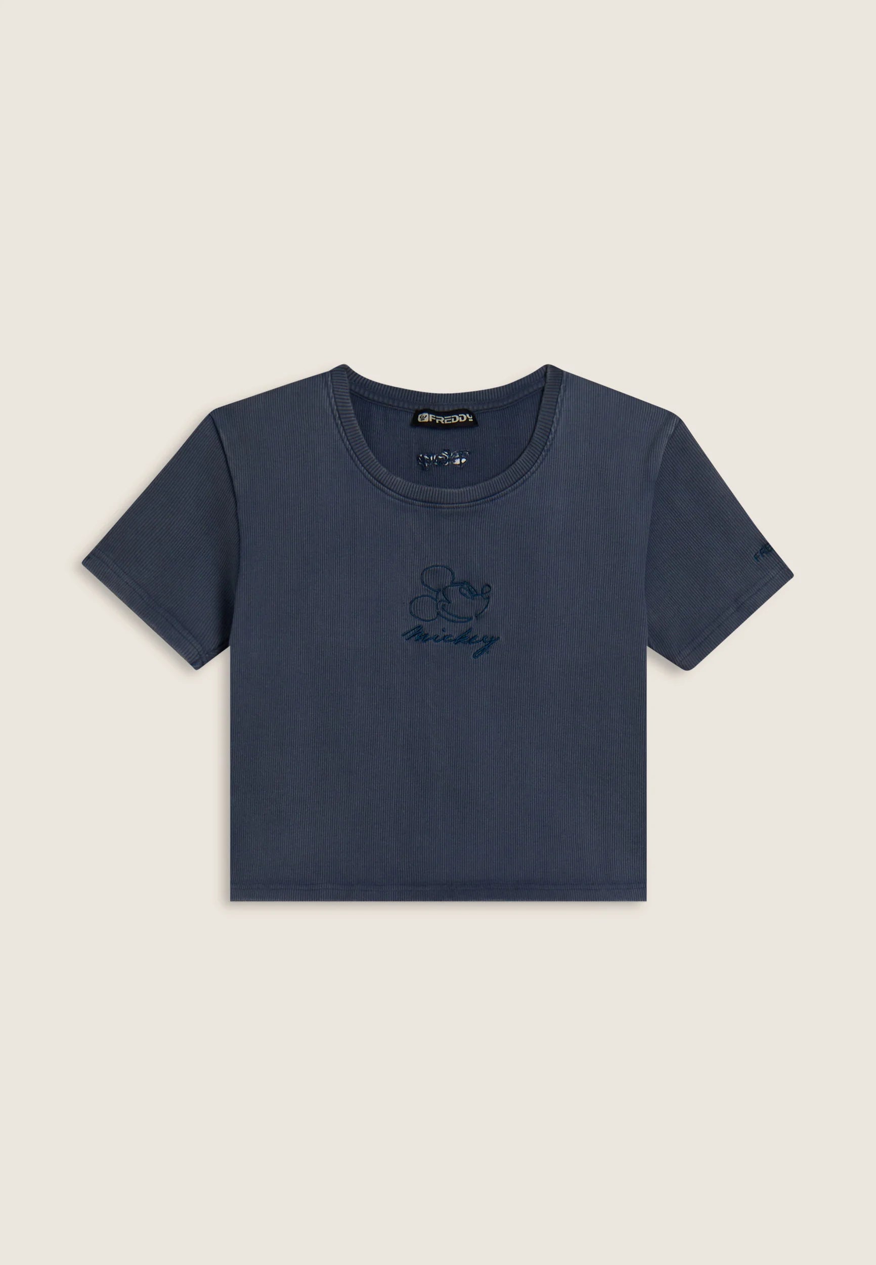 Women's cropped T-shirt with rhinestone Mickey Mouse