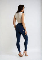 WR.UP® Pants in Blue: designed to flatter and move with you. It combines with a timeless full length, perfect for any season. Adding to that is a flattering high waist that offers gentle support. The look is completed by a sleek skinny fit that hugs your curves. Crafted combining a timeless denim aesthetic with enhanced comfort and flexibility. As part of the WR.UP® line, they feature patented technology designed to naturally enhance and sculpt your silhouette. Perfect for countless occasions, from casual to chic.