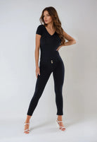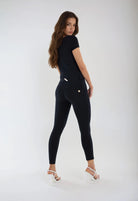 WR.UP® Pants in Black: designed to flatter and move with you. They feature a modern 7/8 length that subtly highlights your ankles. Adding to that is a comfortable mid waist for everyday ease. The look is completed by a sleek skinny fit that hugs your curves. Crafted made with a versatile jersey fabric perfect for all-day wear. As part of the WR.UP® line, they feature patented technology designed to naturally enhance and sculpt your silhouette. Italian design that radiates confidence and style.
