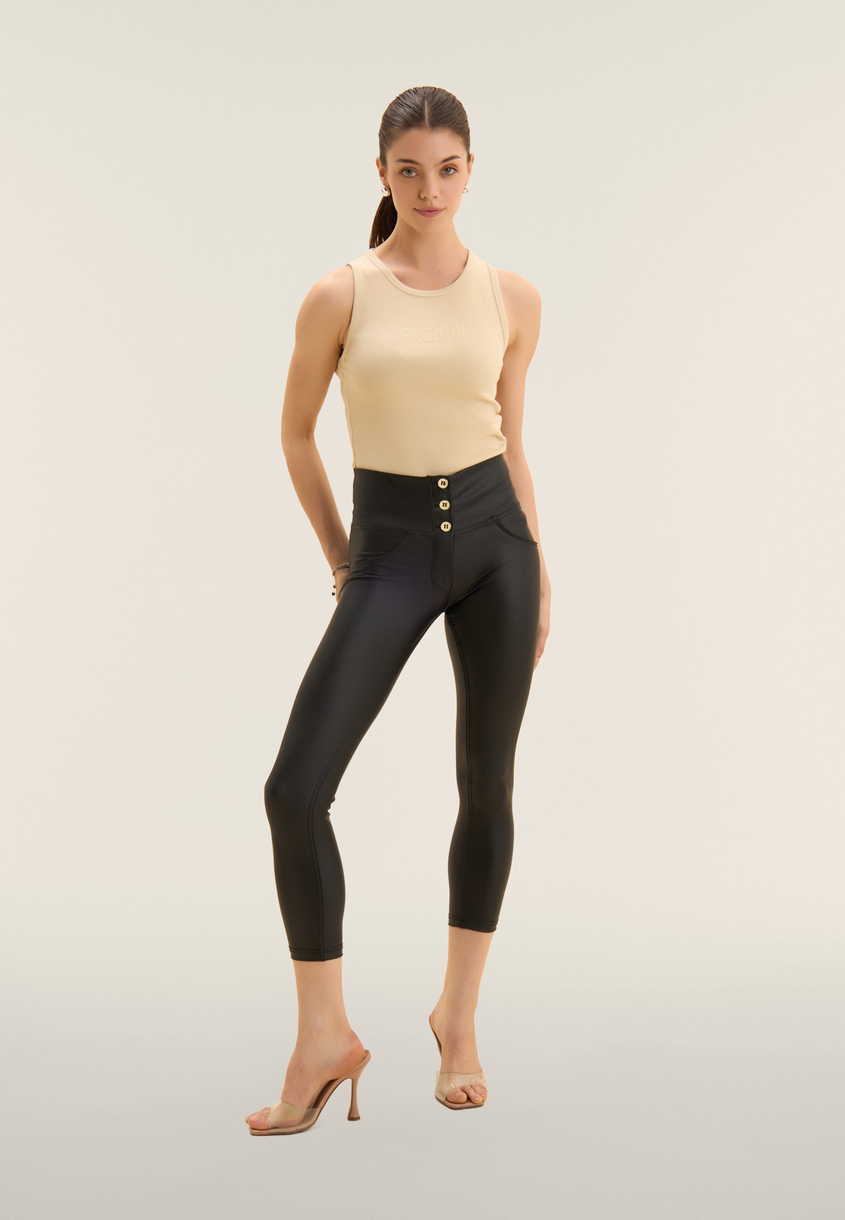 Eine knackig enge Lederhose ist eine sehr gute Anschaffung, die das gewisse Etwas in dein Outfit bringt. Unsere Ecolederhosen werden aus elastischem Kunstleder hergestellt, und sie sind gleichzeitig absolut sexy und bequem. Geht das? Na klar – mit Freddy! Kombiniere die leicht glänzende Lederleggings mit High Heels und einem Top zu einem schicken Party-Outfit, oder mit Slippern und T-Shirt zu einem coolen und trendigen Look.