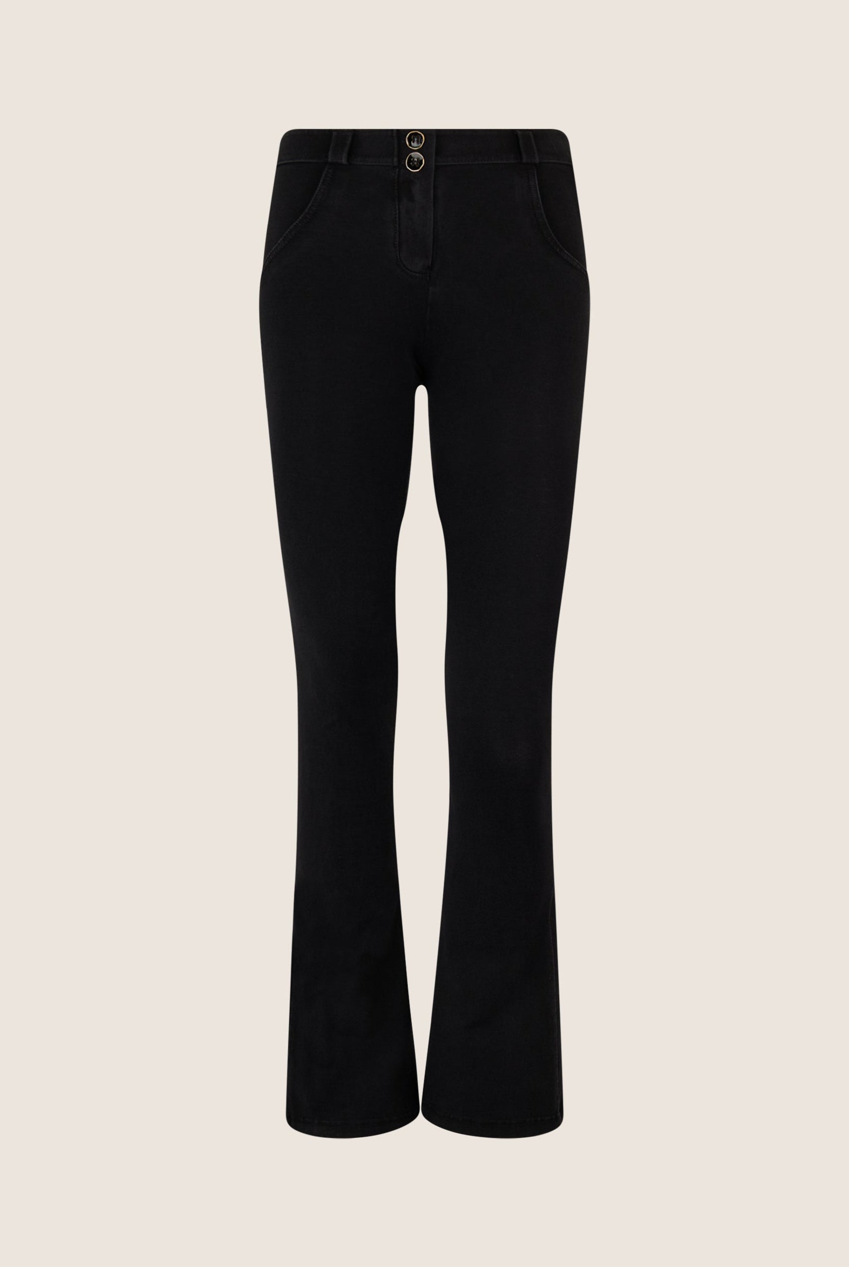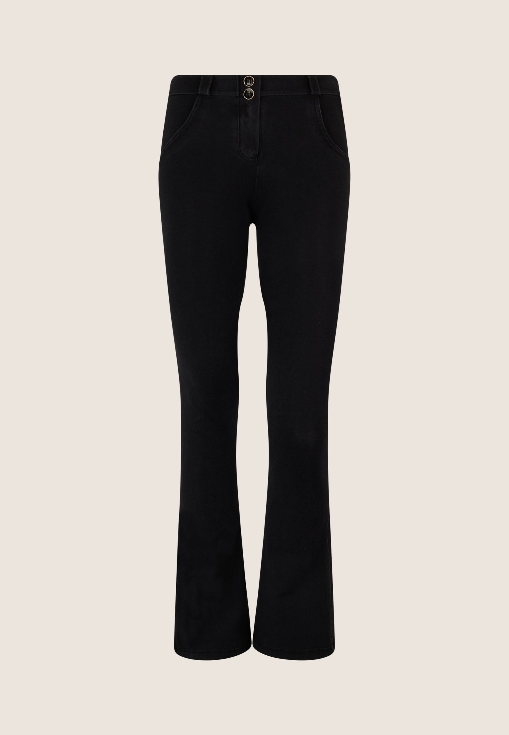 Regular Waist oder Regular Rise ist die klassische, normale Leibhöhe; die Hosen sitzen bequem an deiner Taille. Im Unterschied zu unseren Low-Waist-Hosen ist der Bund ca. 3 cm höher. Die normale Leibhöhe steht fast jeder Frau gut, und lässt sich mit allen Oberteilen kombinieren. Regular Waist ist die beliebteste und häufigste Bundhöhe. Wenn du klein und zierlich bist, lässt du deine Beine mit einer Regular-Waist-Jeans mit schmalen Hosenbeinen optisch verlängern.