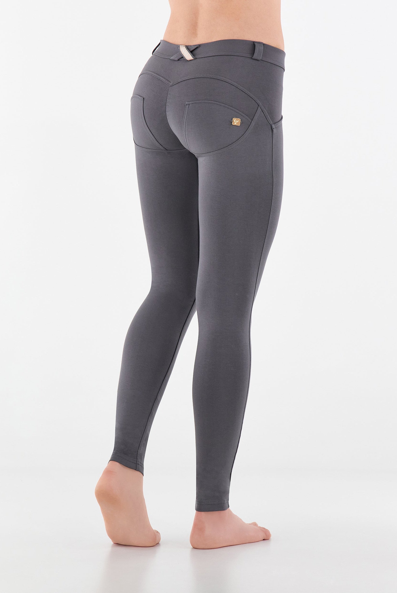 Die Mid-Waist-Modelle sitzen zwischen der Taille und dem Bauchnabel. Alle unsere mittlere Jeans haben vorne drei Freddy-typische Knöpfe. Sie sind etwas höher als unsere Regular-Waist-Hosen, aber nicht ganz so hoch, wie die High-Waist-Modelle. Sie haben einen bequemen, hohen Bund ohne Silikonstreifen, und die Knöpfe sorgen für einen perfekten Sitz. Jeans in Mid Waist eignen sich vor allem für kurvigere Frauen, die mehr Stütze und Form für den Bauch und die Taille möchten. Zusätzlich zaubern die Hosen natürlich den perfekten Po.