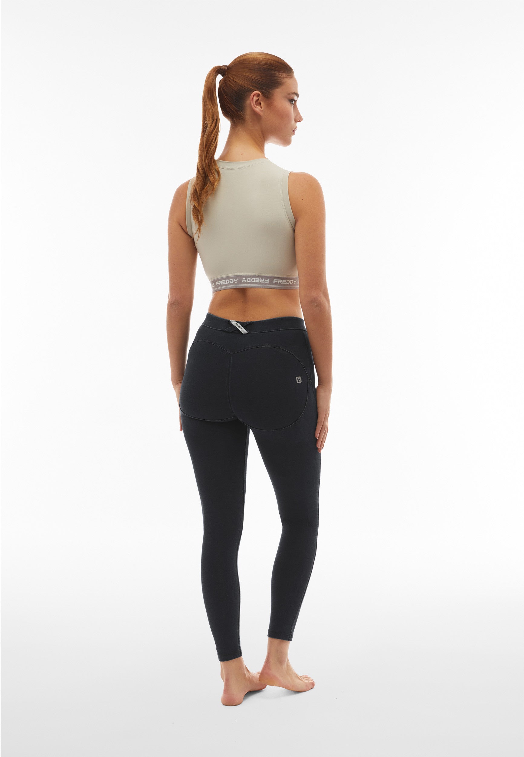 Freddy WR.UP® Core Damen Push-Up Jeans - 7/8 Regular Waist Super Skinny - Schwarz – Schwarze Nähte - J7N