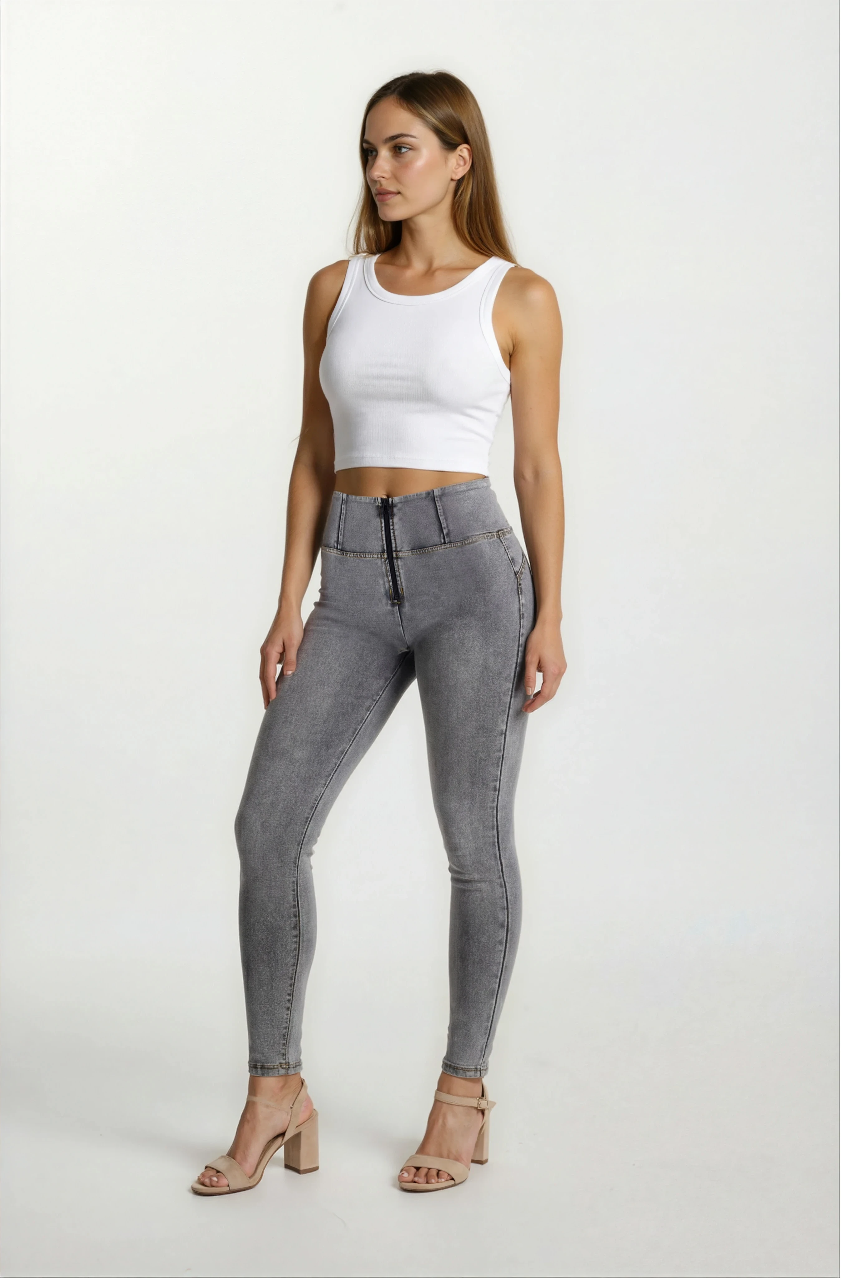Koe WR.UP®-housujen ainutlaatuinen istuvuus ja tuntu harmaana. Ne yhdistävät tyylikkään kapean leikkauksen, joka myötäilee muotojasi. Lisäksi niissä on imarteleva korkeavyötärö, joka tarjoaa lempeää tukea. Ilmeen täydentää ajaton täyspitkä malli, joka sopii täydellisesti mihin tahansa vuodenaikaan. Valmistettu joustavasta farkkumaisesta materiaalista aidon tyylin ja helpon liikkumisen takaamiseksi. Osana WR.UP®-mallistoa ne sisältävät patentoitua teknologiaa, joka luonnollisesti korostaa ja muokkaa siluettiasi. Täydelliset lukemattomiin tilaisuuksiin, rentoista tyylikkäisiin.