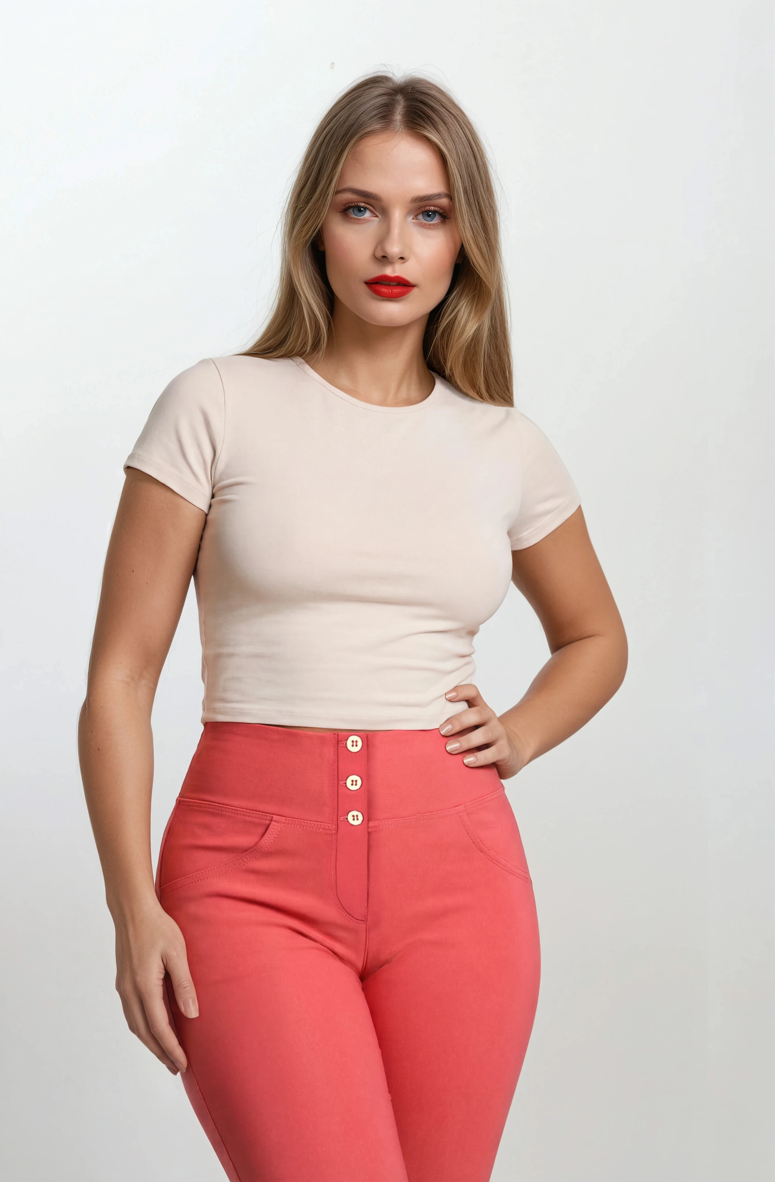 WR.UP Push-Up Button High Waist Skinny Flex Tech Leggings - Cayenne Red
