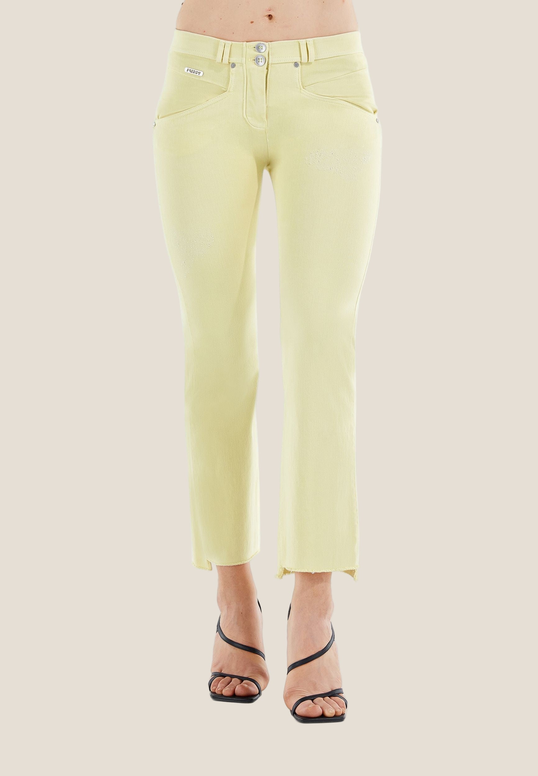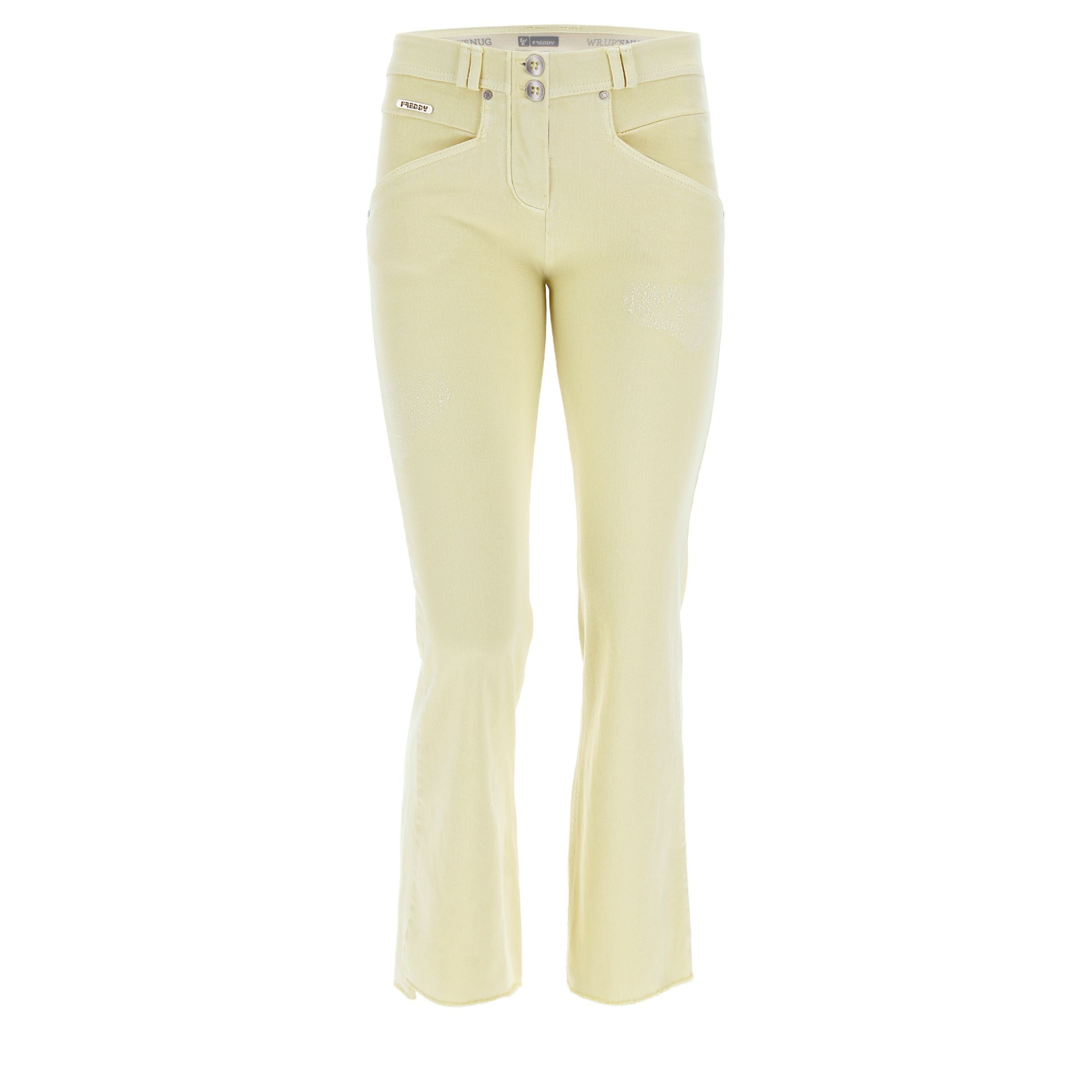 WR.UP® Organic -housut keltaisena yhdistävät ikonisen Freddy-tyylin poikkeukselliseen mukavuuteen. Tämä vaatekappale hurmaa modernilla 7/8-pituudellaan, joka korostaa hienovaraisesti nilkkojasi. Lisäksi siinä on mukava keskitason vyötärö arjen helppoutta varten. Valmistettu ympäristöystävällisestä luomupuuvillasta, joka tarjoaa pehmeyttä, josta voit olla ylpeä, yhdistäen ajattoman farkkutyyliin parannetun mukavuuden ja joustavuuden kanssa sekä sisältäen ympäristöystävällisen Tencel™ Lyocellin, joka tunnetaan pehmeästä kosketuksestaan ja hengittävyydestään. Osana WR.UP®-mallistoa ne sisältävät patentoitua teknologiaa, joka on suunniteltu luonnollisesti korostamaan ja muotoilemaan siluettiasi. Tämä on luottovaatekappaleesi päivinä, jolloin haluat vain tuntea olosi upeaksi.