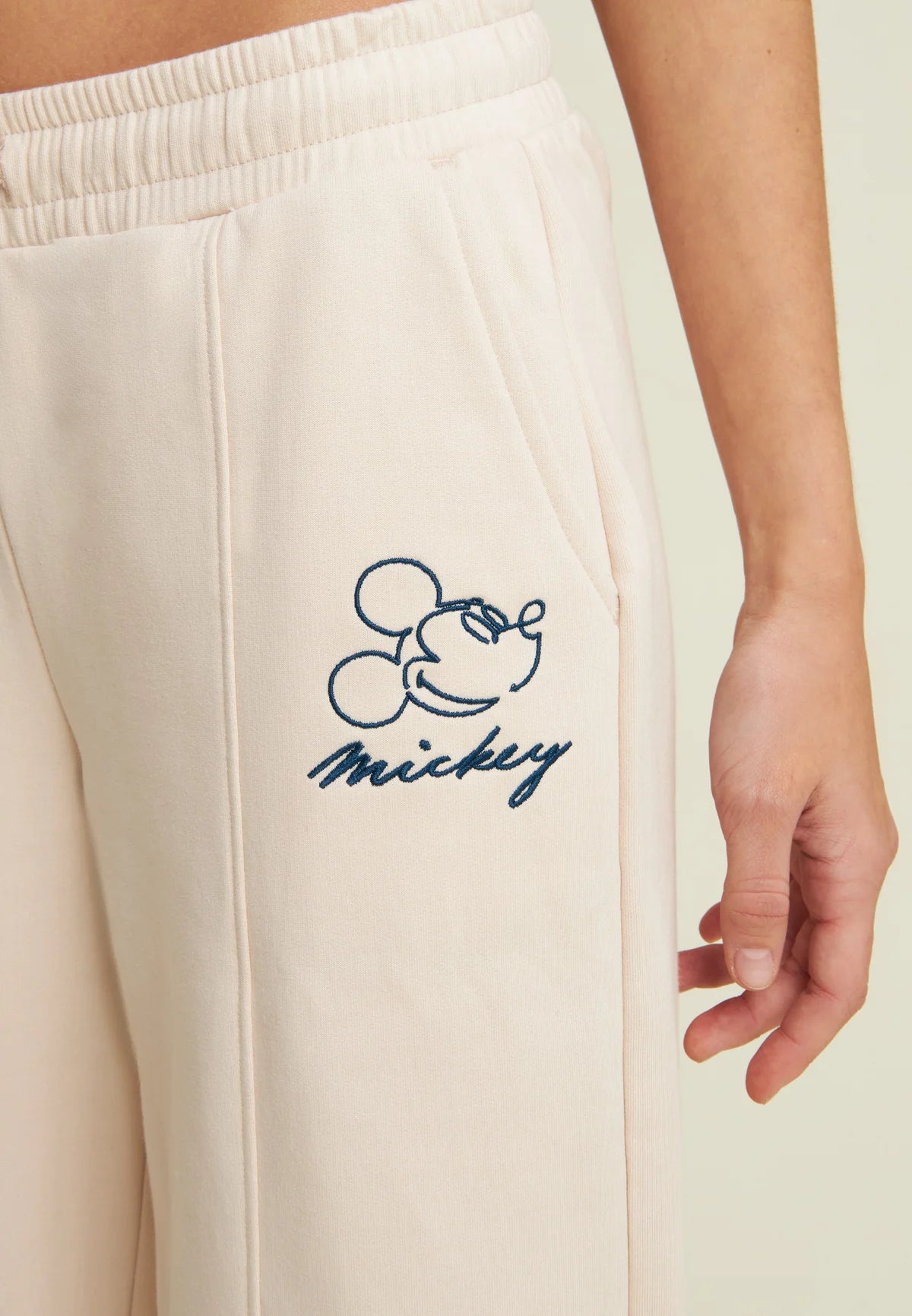 Women's wide leg trousers with Mickey Mouse embroidery