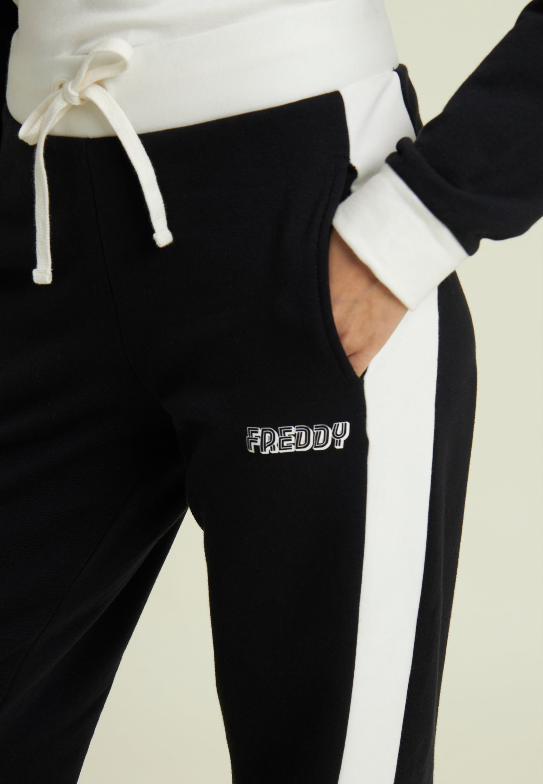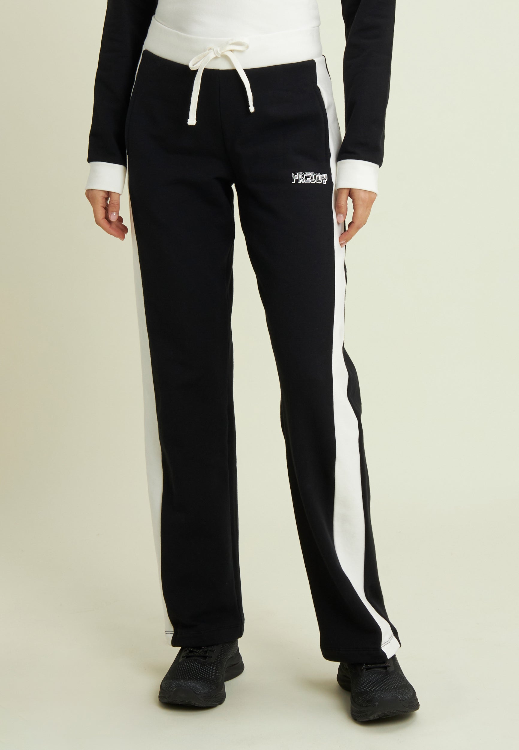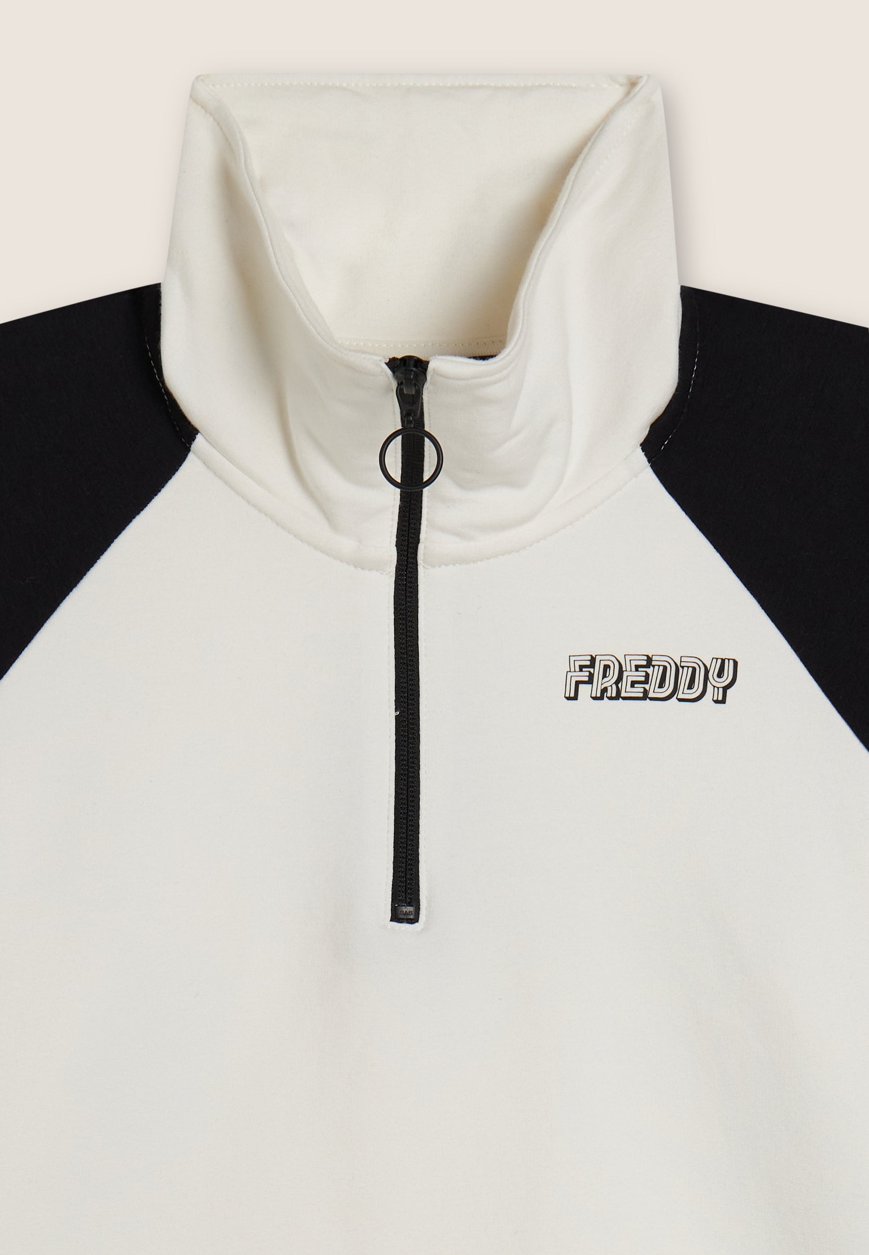 Two-tone cropped sweatshirt with half-zip and turtleneck