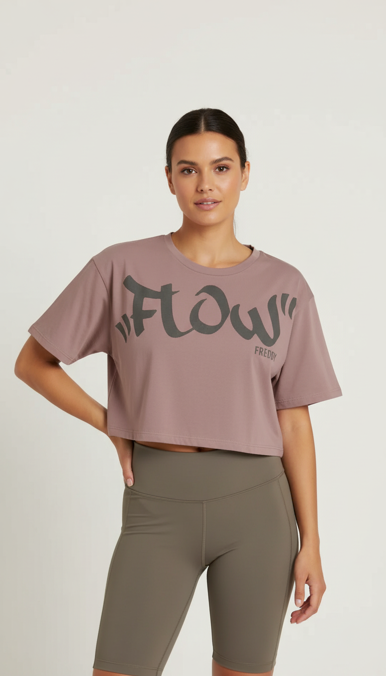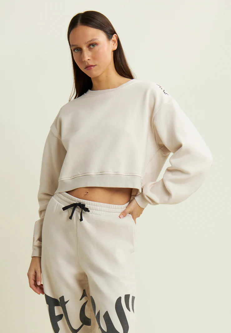 Oversized cropped sweatshirt with Flow print on the shoulder