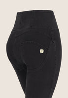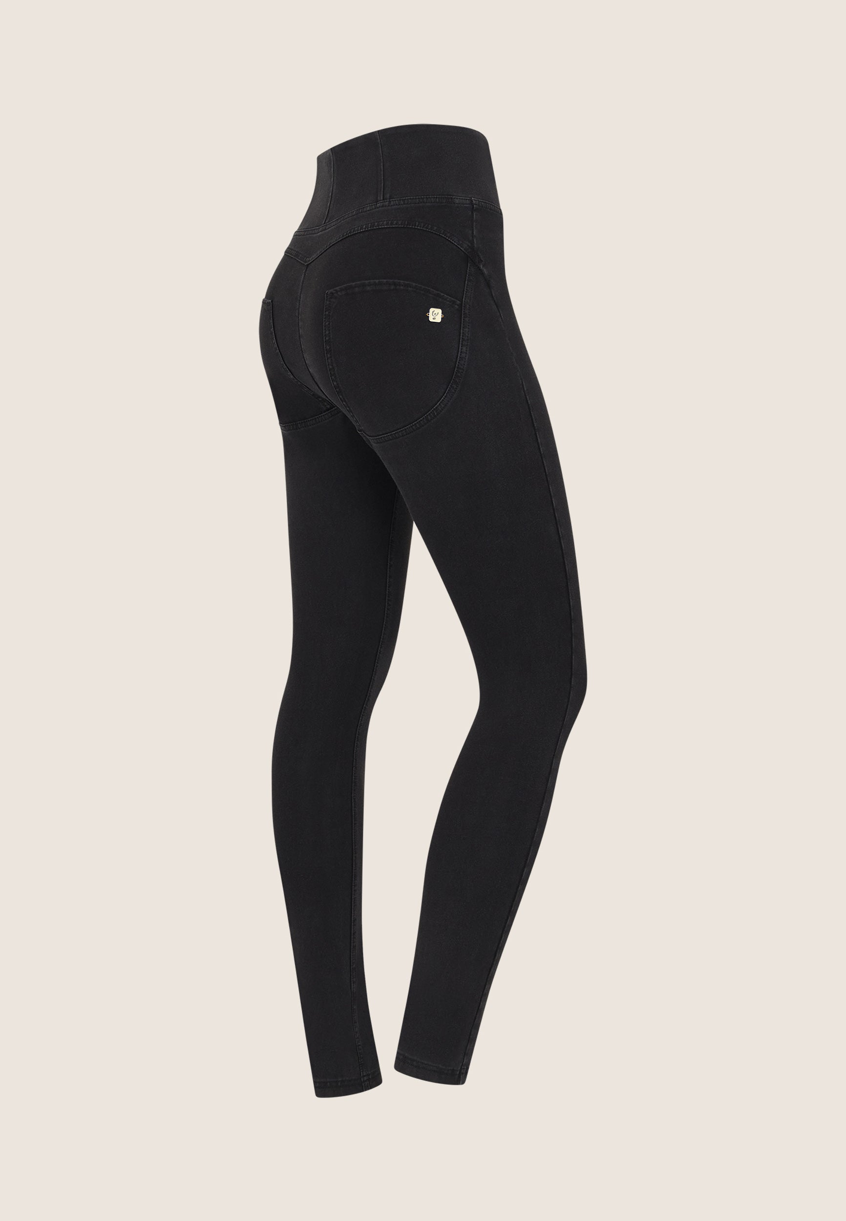 WR.UP® bikses melnā krāsā: izstrādātas, lai izceltu un kustētos kopā ar jums. Šis gabals pārsteidz ar glaimojošu augsto vidukli, kas nodrošina maigu atbalstu. Izgatavotas no elastīga džinsa efekta materiāla autentiskam stilam un vieglai kustībai. Kā daļa no WR.UP® līnijas, tās ir aprīkotas ar patentētu tehnoloģiju, kas paredzēta, lai dabiski uzlabotu un veidotu jūsu siluetu. Bikses, kas viegli apvieno komfortu un modernu izskatu.