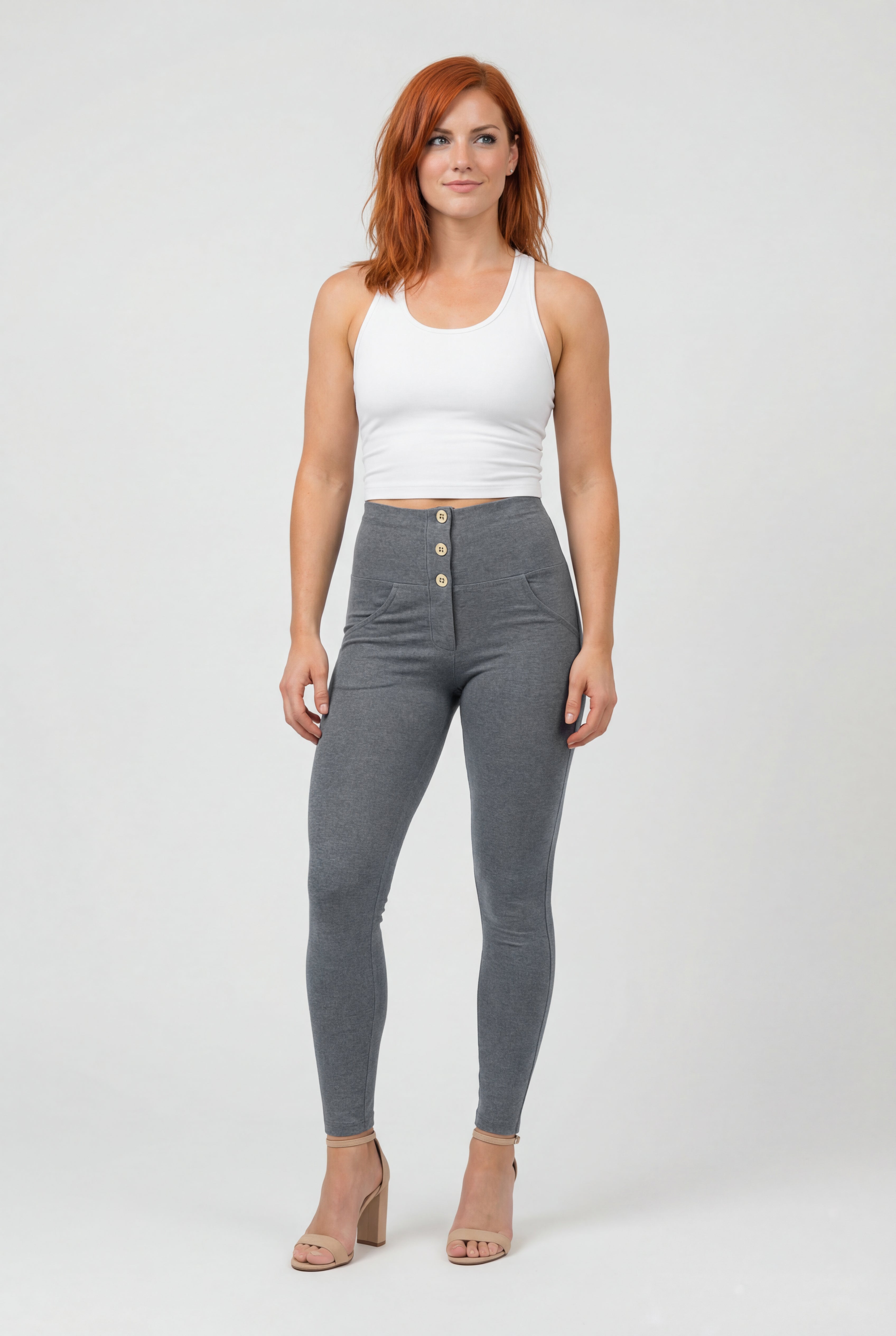 WR.UP Push-Up Button High Waist Skinny Pants - Medium Mélange Gray