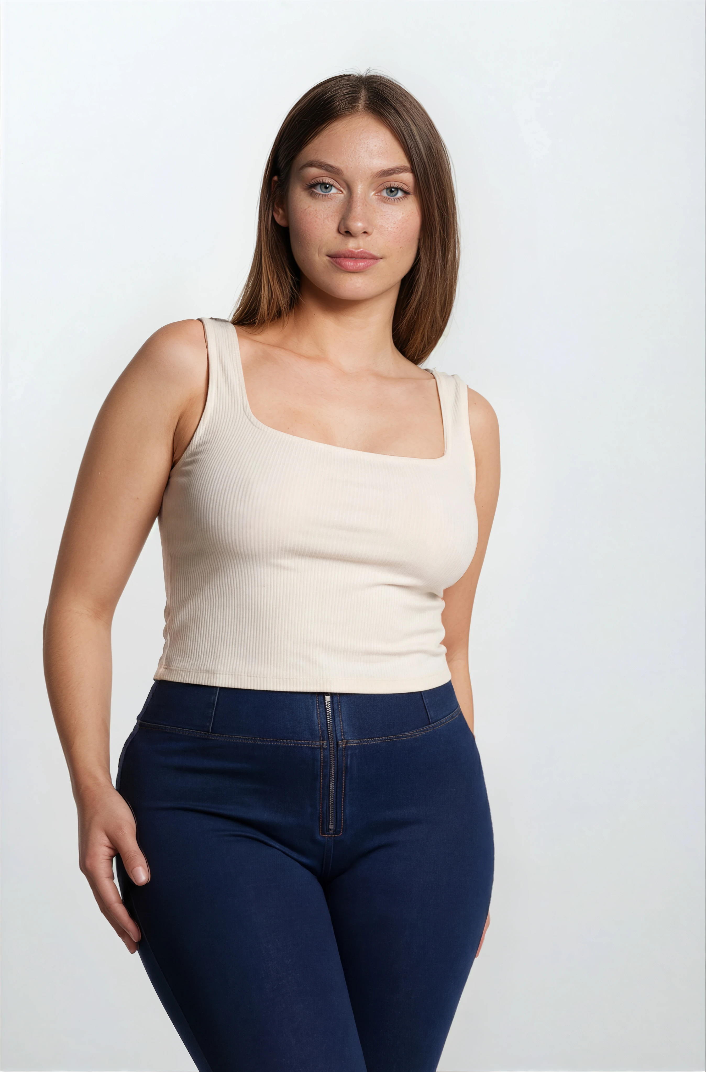Piedzīvojiet unikālo WR.UP® biksu zilajā krāsā piegulēšanu un sajūtu. Šis gabals pārsteidz ar glaimojošu augsto vidukli, kas nodrošina maigu atbalstu. Izstrādāts ar elastīgu džinsa efektu materiālu autentiskam stilam un vieglai kustībai. Kā daļa no WR.UP® līnijas, tās ir aprīkotas ar patentētu tehnoloģiju, kas paredzēta, lai dabiski uzlabotu un veidotu jūsu siluetu. Itāļu dizains, kas izstaro pārliecību un stilu.