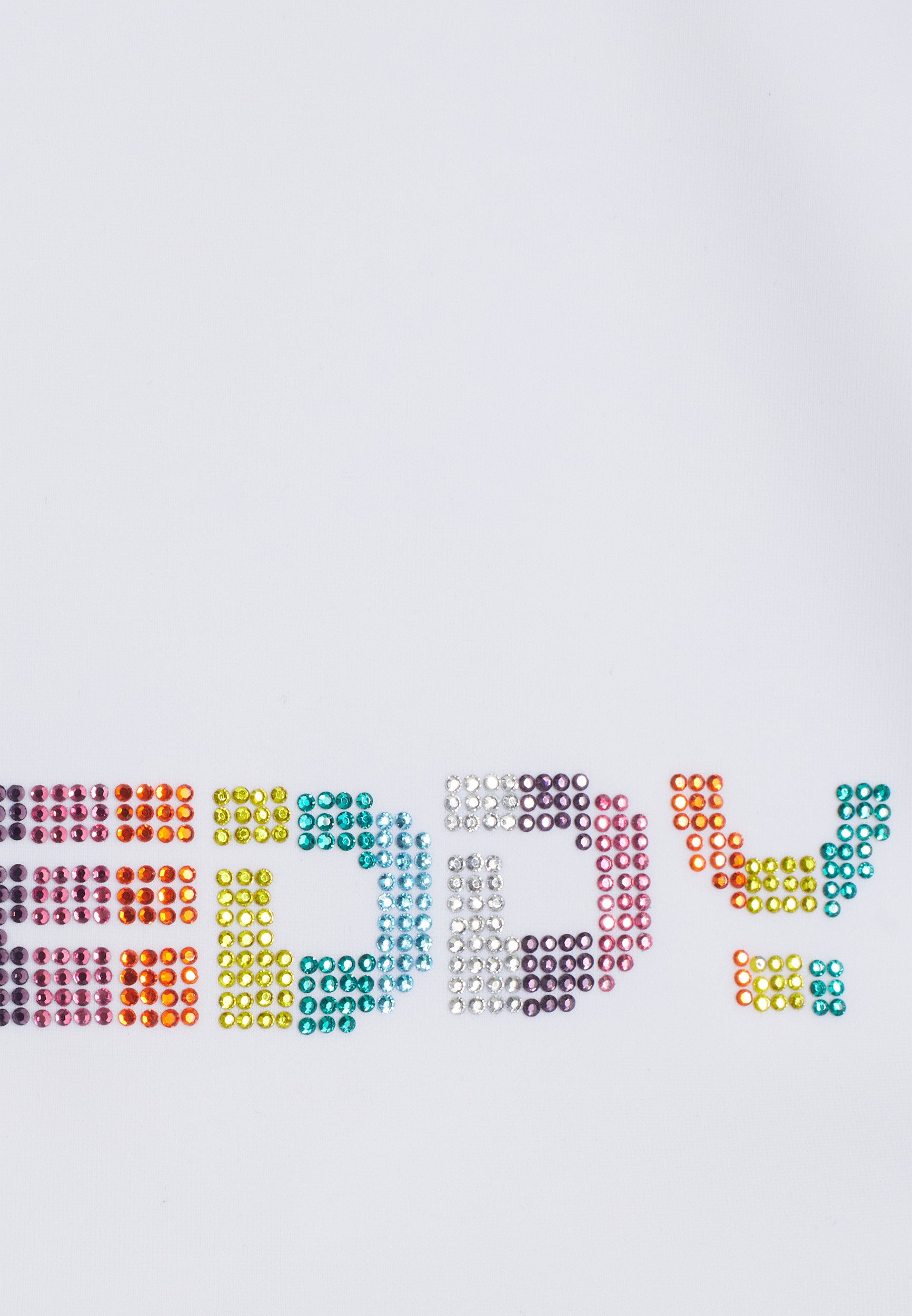This Bikini-Neckholder-Top mit strassbesetztem Freddy Logo in White is your perfect partner for workouts and leisure. Crafted from a adaptable stretch material for easy wear and flexibility. Pair it casually or sportily – your choice.