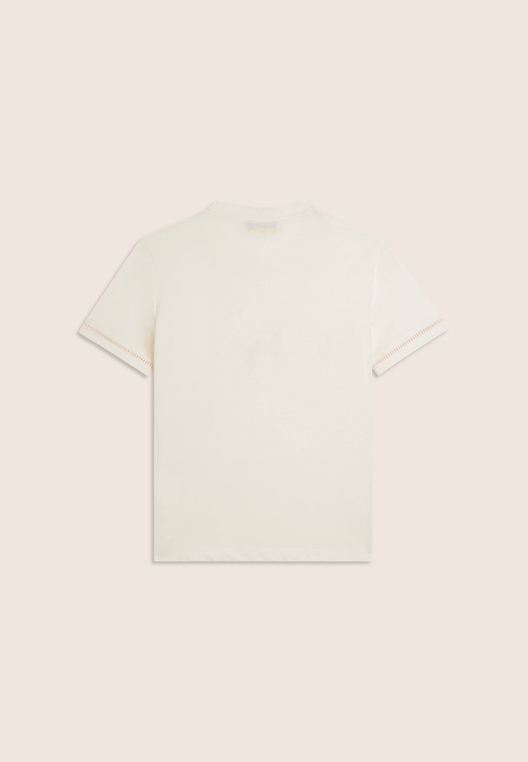 Crew neck t-shirt with perforated logo embroidery - Egret White