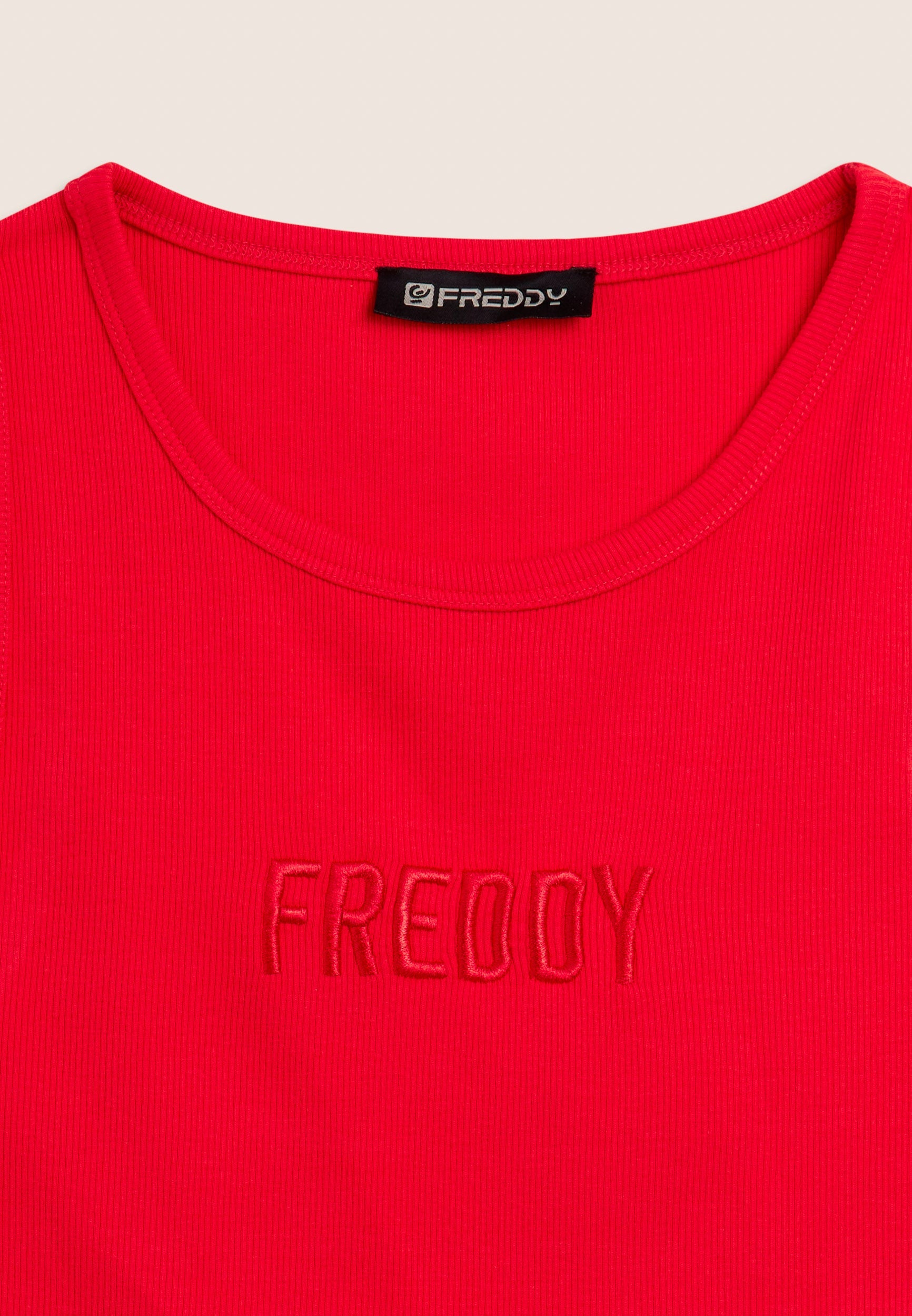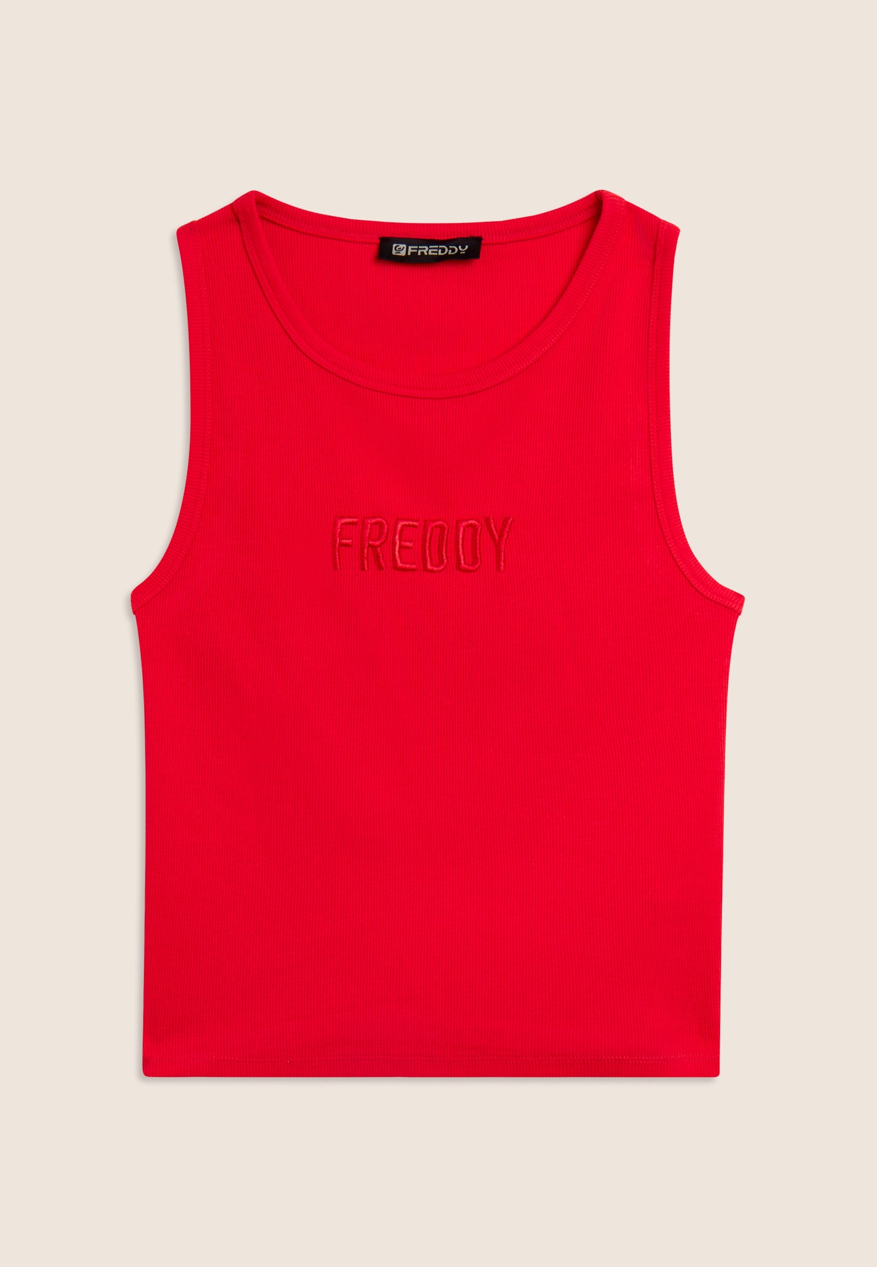 Cropped tank top with embroidered FREDDY logo - Cayenne Red