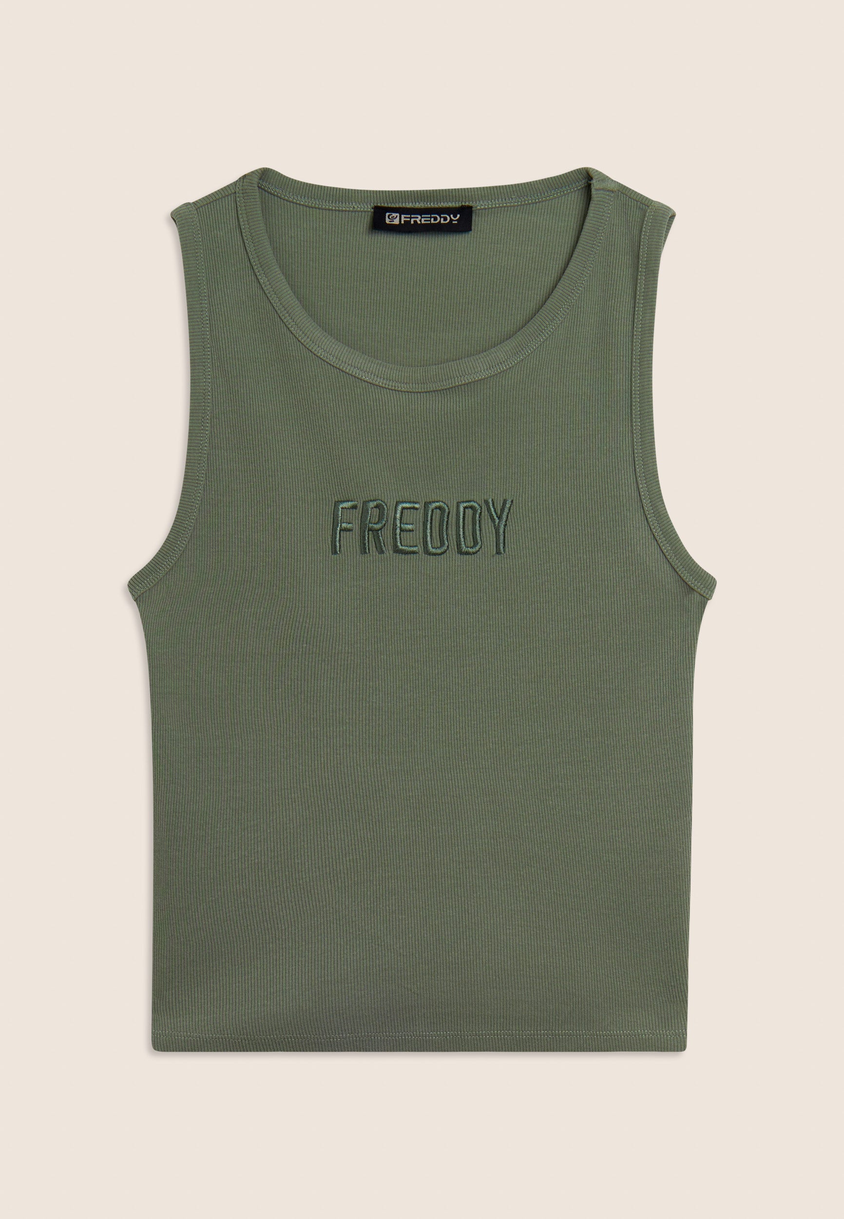 Cropped tank top with embroidered FREDDY logo - Sea Spray Green