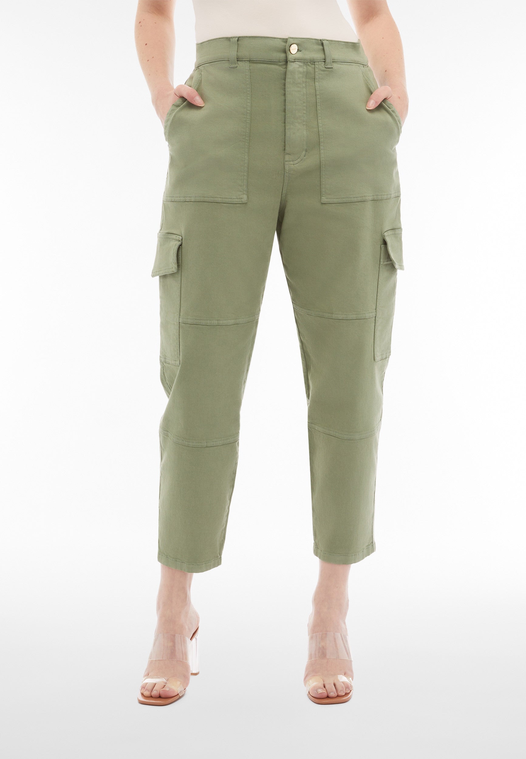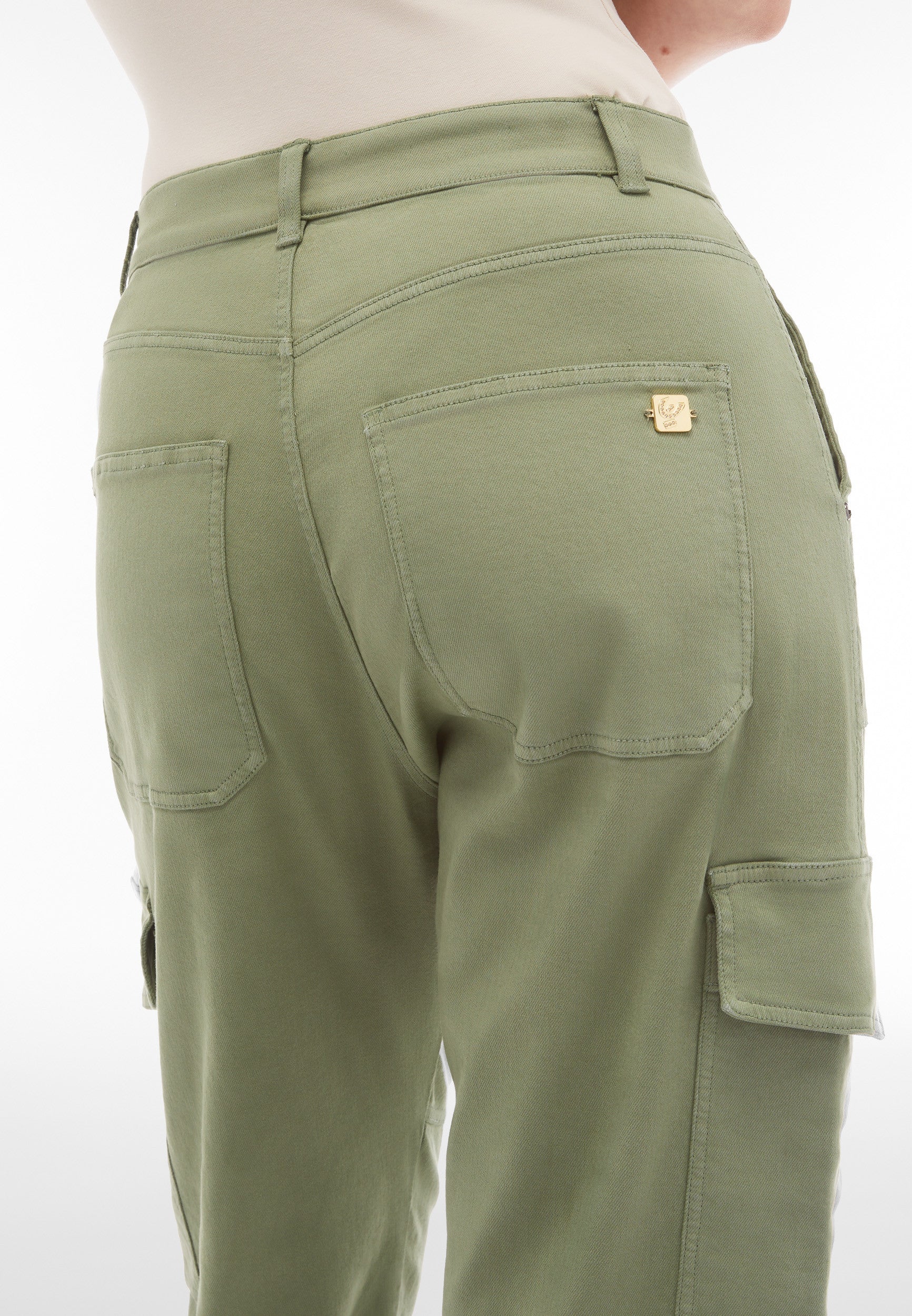The Fit Jeans Pants in Green combine iconic Freddy style with exceptional comfort. This piece impresses with a timeless straight leg for classic versatility. Adding to that is a flattering high waist that offers gentle support. The look is completed by a sporty 3/4 length, ideal for warmer days or showing off footwear. Crafted designed in a trendy cargo style with functional pocket details and designed with a stretch denim-effect material for authentic style and easy movement. Your go-to piece for days when you just want to feel great.