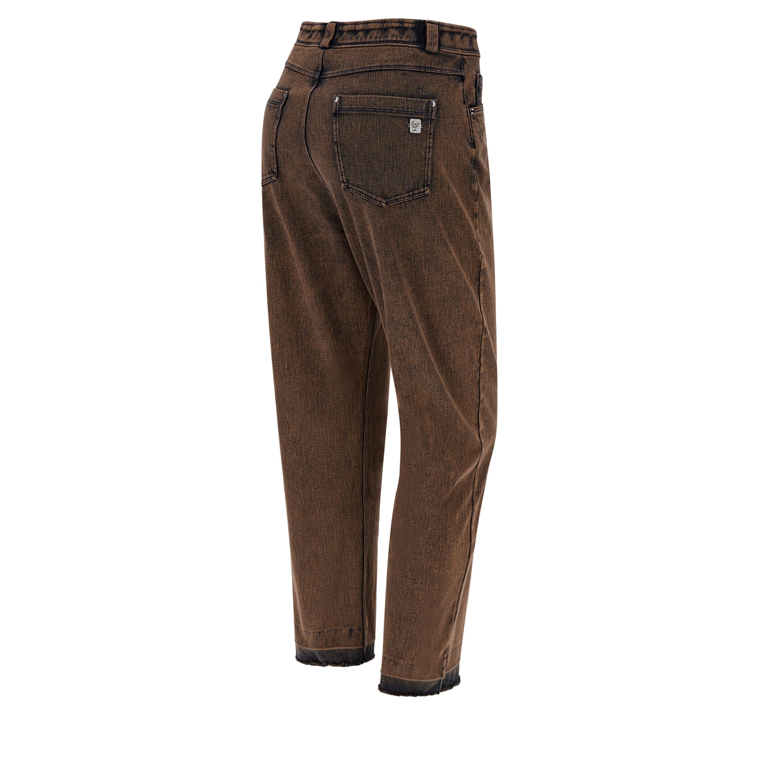 The Fit Jeans Pants in Brown combine iconic Freddy style with exceptional comfort. It combines with a timeless straight leg for classic versatility. Adding to that is a flattering high waist that offers gentle support. The look is completed by a sporty 3/4 length, ideal for warmer days or showing off footwear. Crafted combining a timeless denim aesthetic with enhanced comfort and flexibility. Italian design that radiates confidence and style.