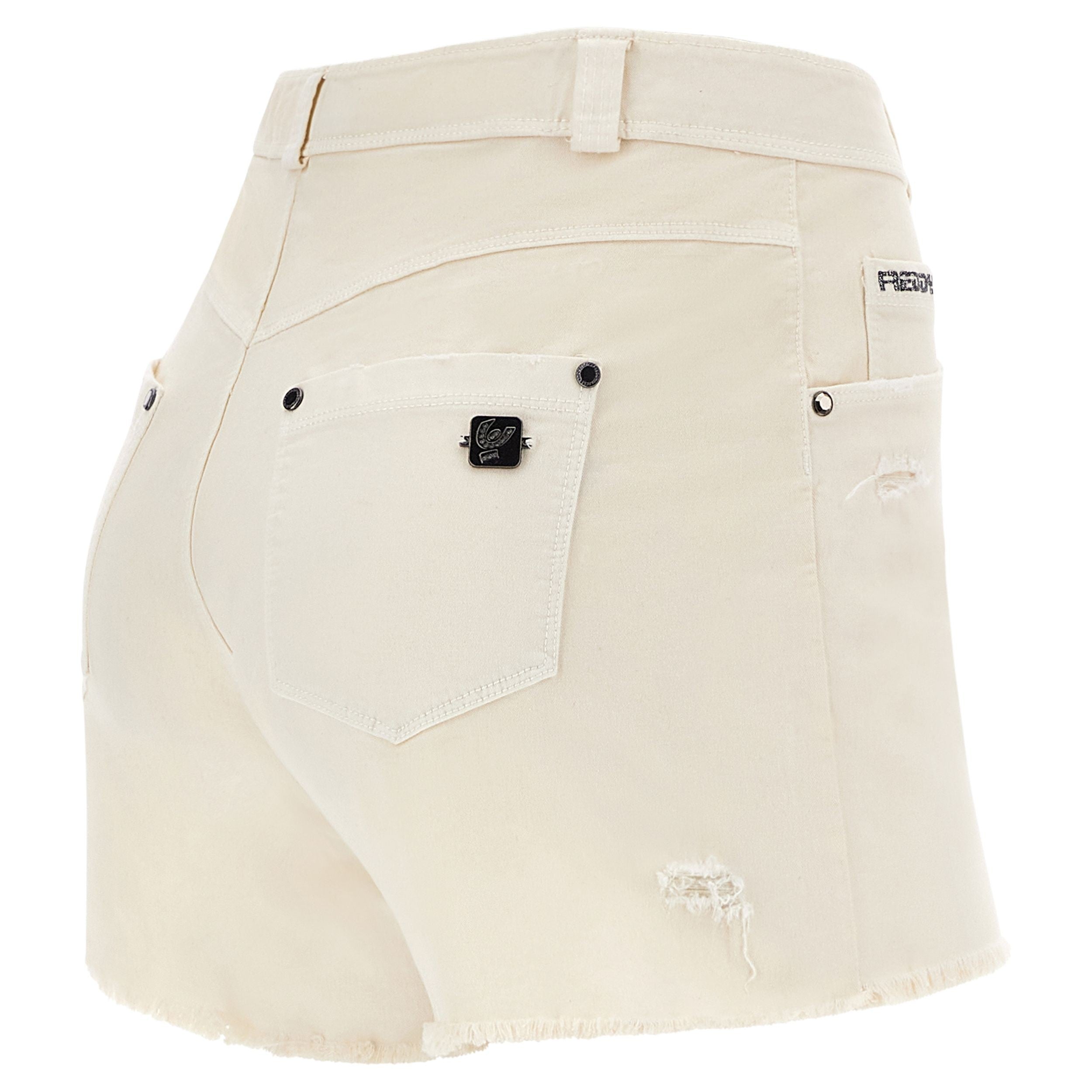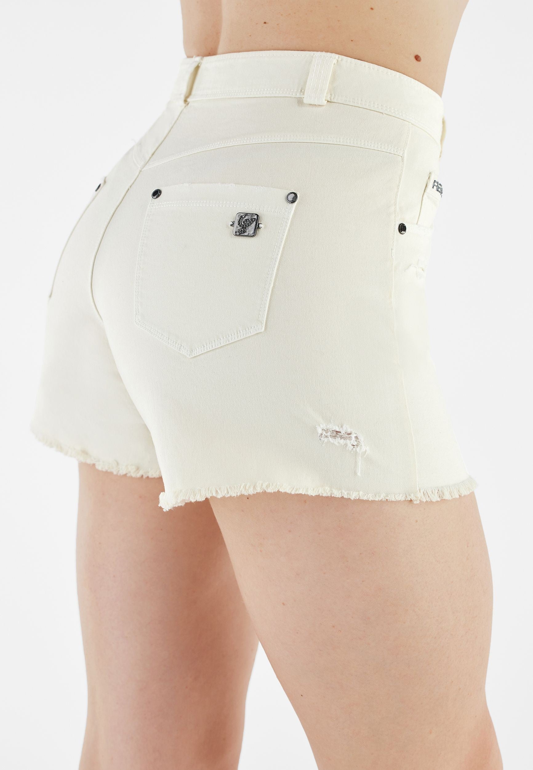 Experience the unique fit and feel of the Fit Jeans Shorts in Beige. They feature a fresh shorts cut for sunny days and active moments. Adding to that is a comfortable mid waist for everyday ease. Crafted to offer the classic look of denim with the comfort of soft, flexible fabric. Perfect for countless occasions, from casual to chic.