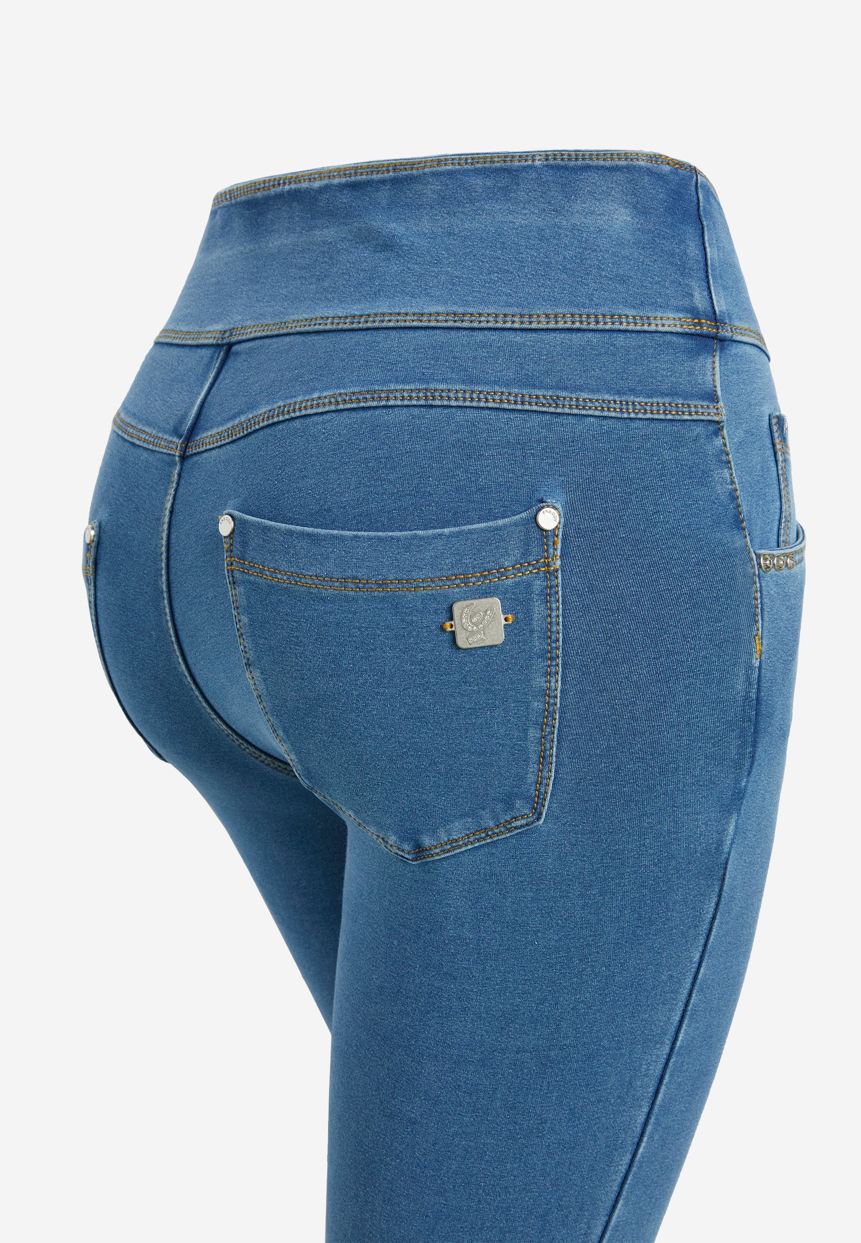 The N.O.W.® line of trousers supports your every movement without constraints thanks to the special four-way stretch, durable, denim-effect jersey fabric that facilitates movement. At the same time, it perfectly echoes the lines of the body, defining without constricting the silhouette.