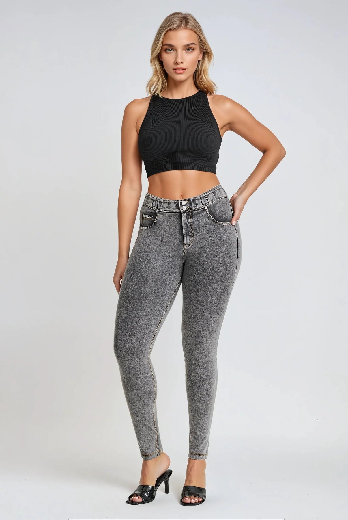 Experience the unique fit and feel of the NOW® Pants in Grey. It combines with a sleek skinny fit that hugs your curves. Adding to that is a comfortable mid waist for everyday ease. The look is completed by a timeless full length, perfect for any season. Crafted designed with a stretch denim-effect material for authentic style and easy movement. Belonging to the NOW® collection, these pants prioritize ultimate comfort and freedom, moving effortlessly with you. Italian design that radiates confidence and style.
