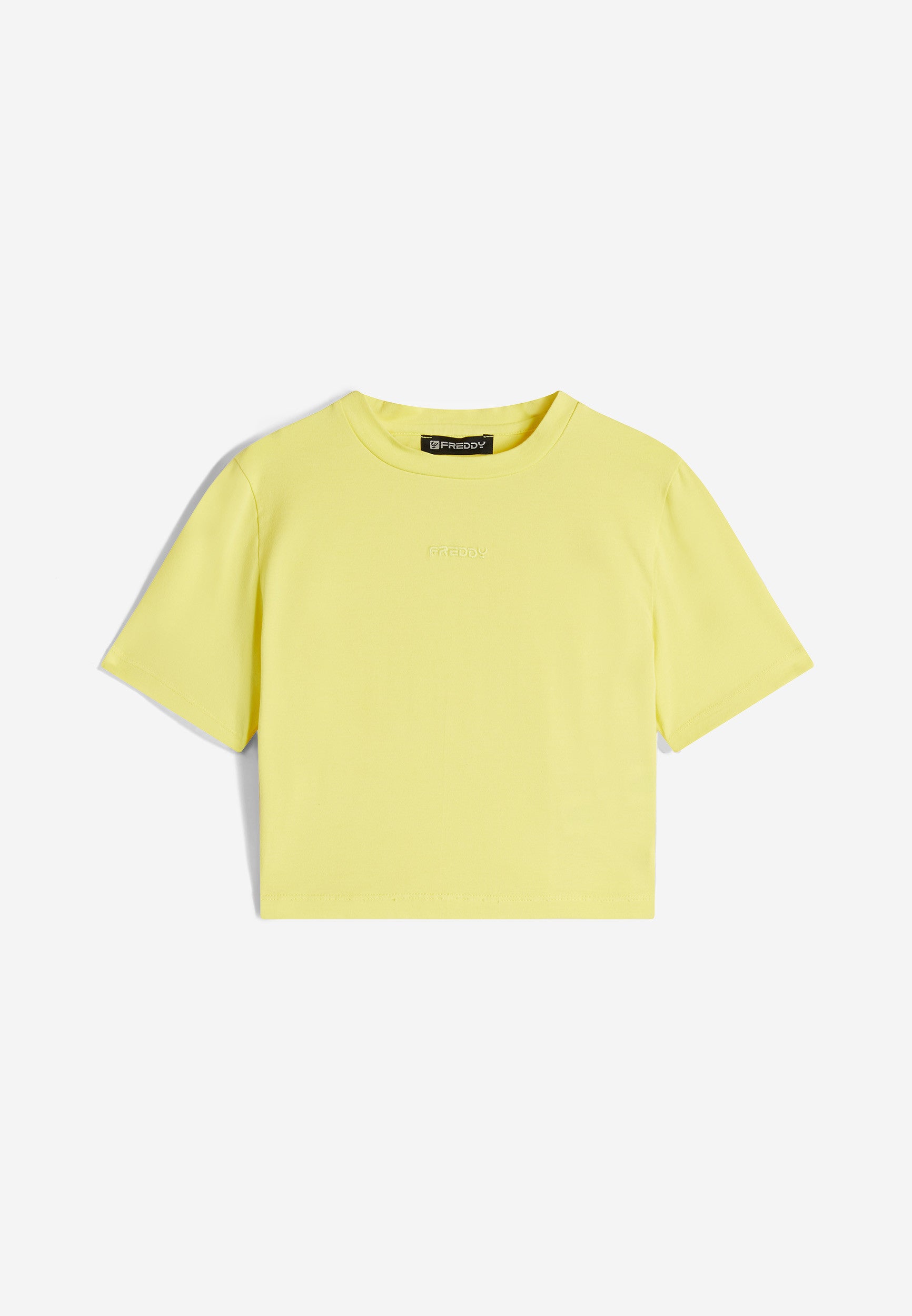 Crafted for comfort and style: the versatile Top in Yellow. As a fashionable crop top. Crafted made with a versatile jersey fabric perfect for all-day wear. A versatile top for workouts and leisure.