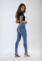 WR.UP® Pants in Blue: designed to flatter and move with you. This piece impresses with a timeless full length, perfect for any season. Adding to that is a flattering high waist that offers gentle support. The look is completed by a sleek skinny fit that hugs your curves. Crafted combining a timeless denim aesthetic with enhanced comfort and flexibility. As part of the WR.UP® line, they feature patented technology designed to naturally enhance and sculpt your silhouette. Italian design that radiates confidence and style.