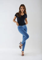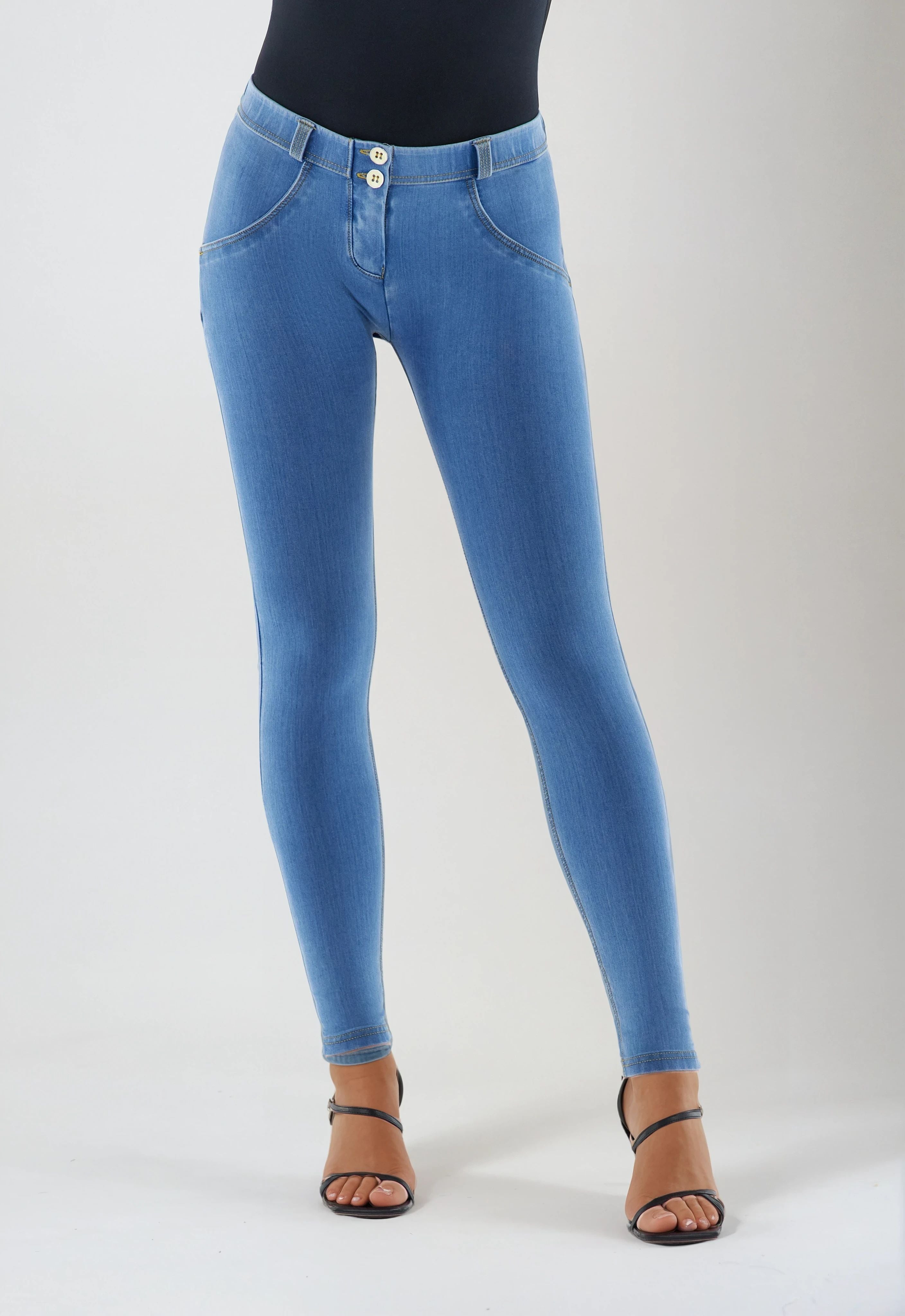 Experience the unique fit and feel of the WR.UP® Pants in Blue. It combines with a timeless full length, perfect for any season. Adding to that is a comfortable mid waist for everyday ease. The look is completed by a sleek skinny fit that hugs your curves. Crafted designed with a stretch denim-effect material for authentic style and easy movement. As part of the WR.UP® line, they feature patented technology designed to naturally enhance and sculpt your silhouette. Italian design that radiates confidence and style.