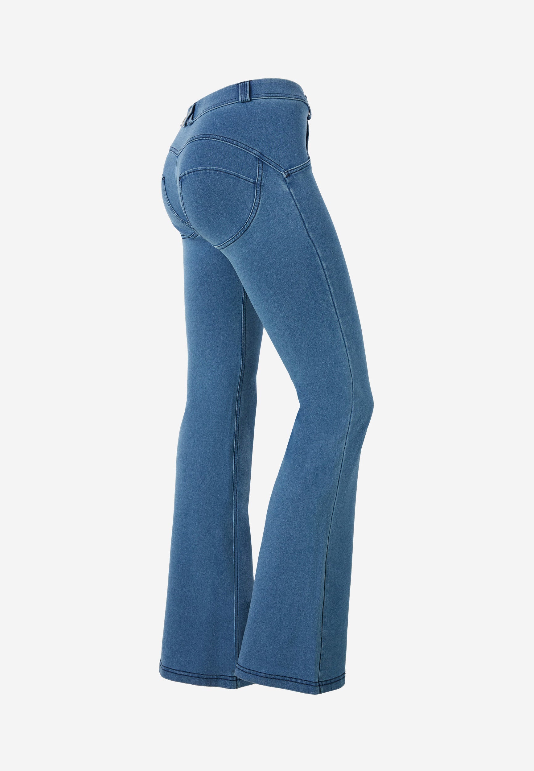 The WR.UP® Pants in Blue combine iconic Freddy style with exceptional comfort. They feature a timeless full length, perfect for any season, and an elegant flare cut that visually elongates the legs. The look is completed by a comfortable mid-waist for everyday ease. Crafted to offer the classic look of denim with the comfort of soft, flexible fabric. As part of the WR.UP® line, they feature patented technology designed to naturally enhance and sculpt your silhouette. Perfect for countless occasions, from casual to chic.